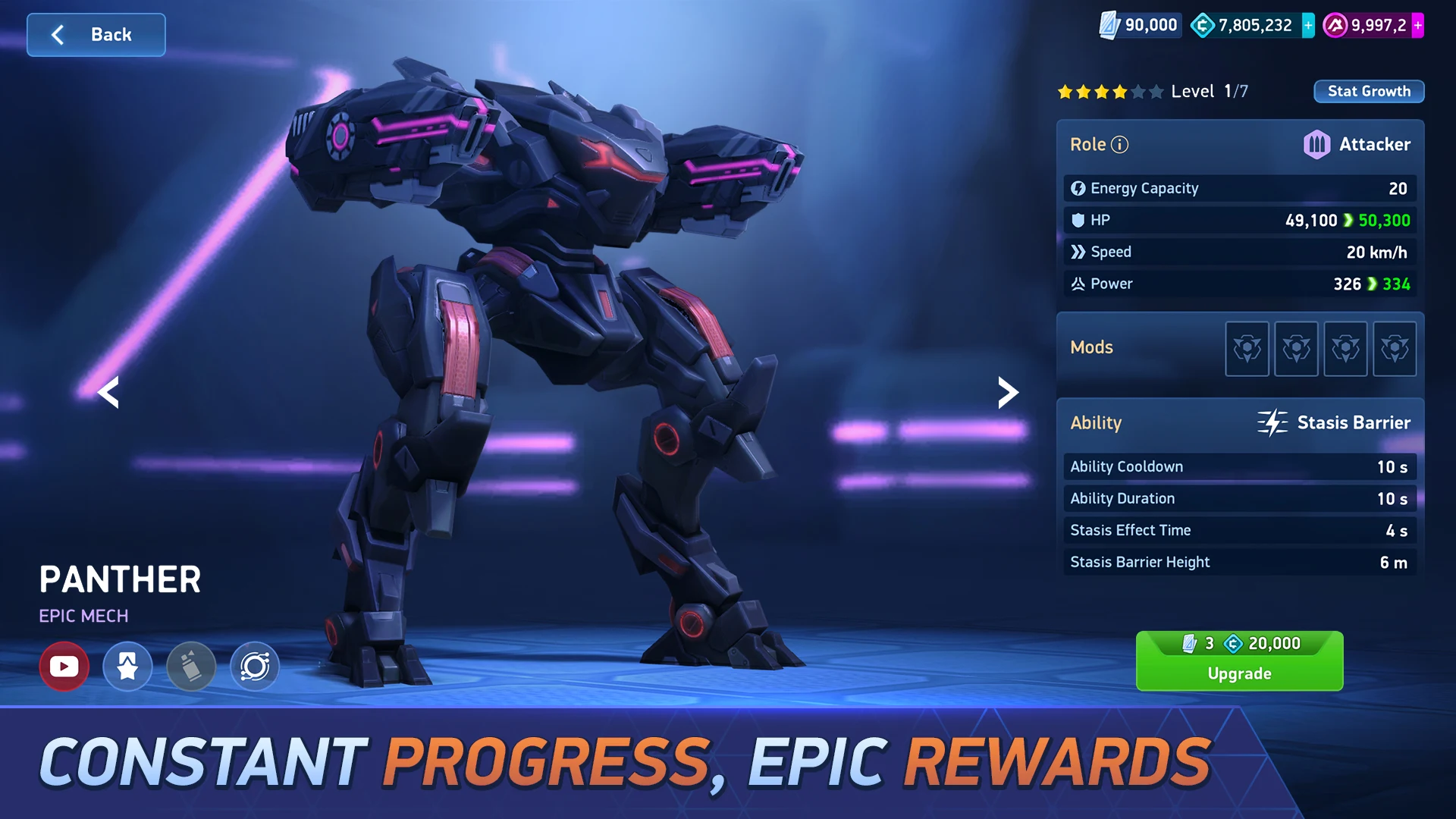 To enrich players' mech inventories, Mech Arena offers over 25 distinct types of robots, along with more than 90 weapon variants and thousands of accessories and modules.