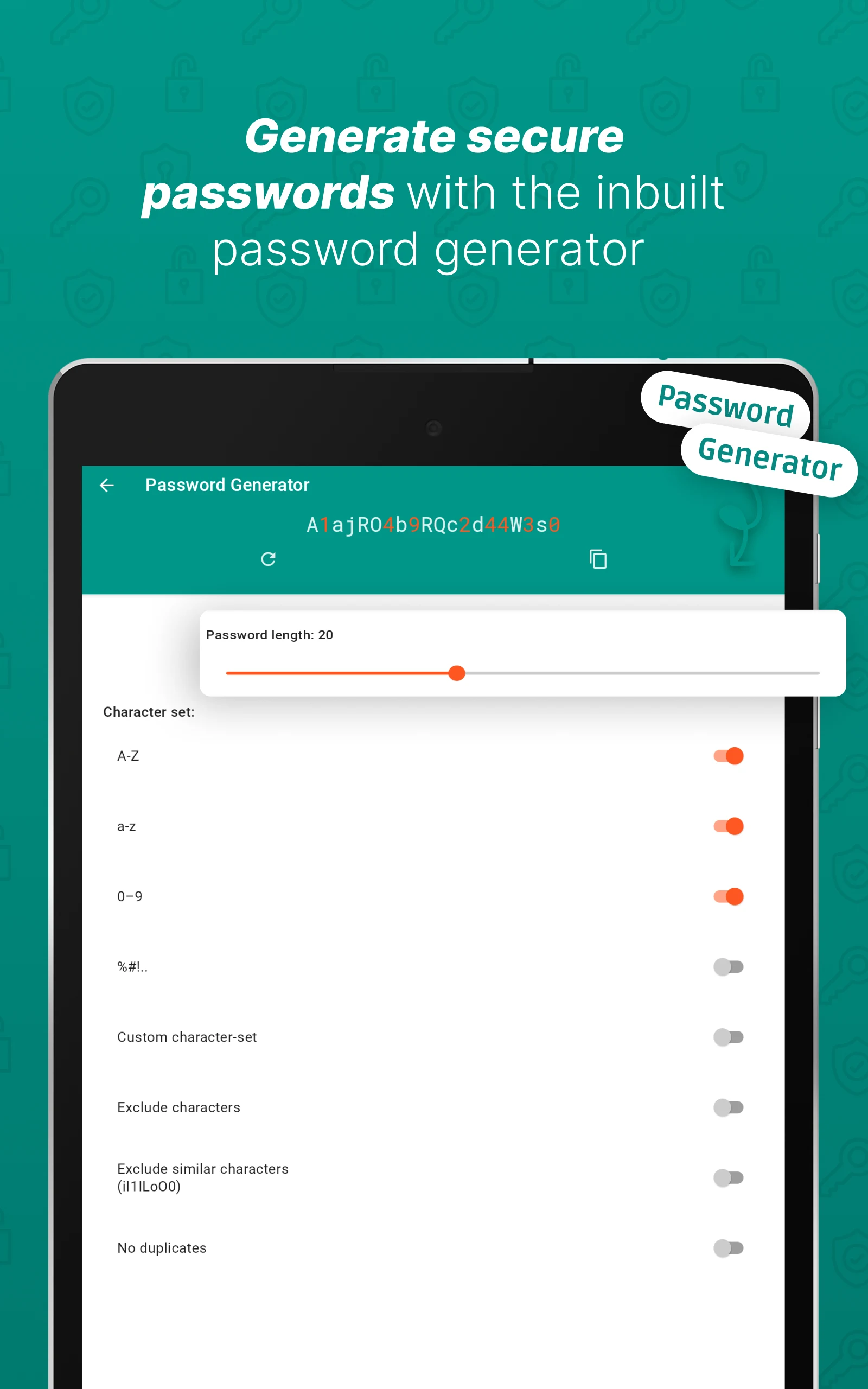 With integrated widgets, you can generate multiple random passwords directly from your homescreen, which will be automatically copied to your clipboard for convenience.