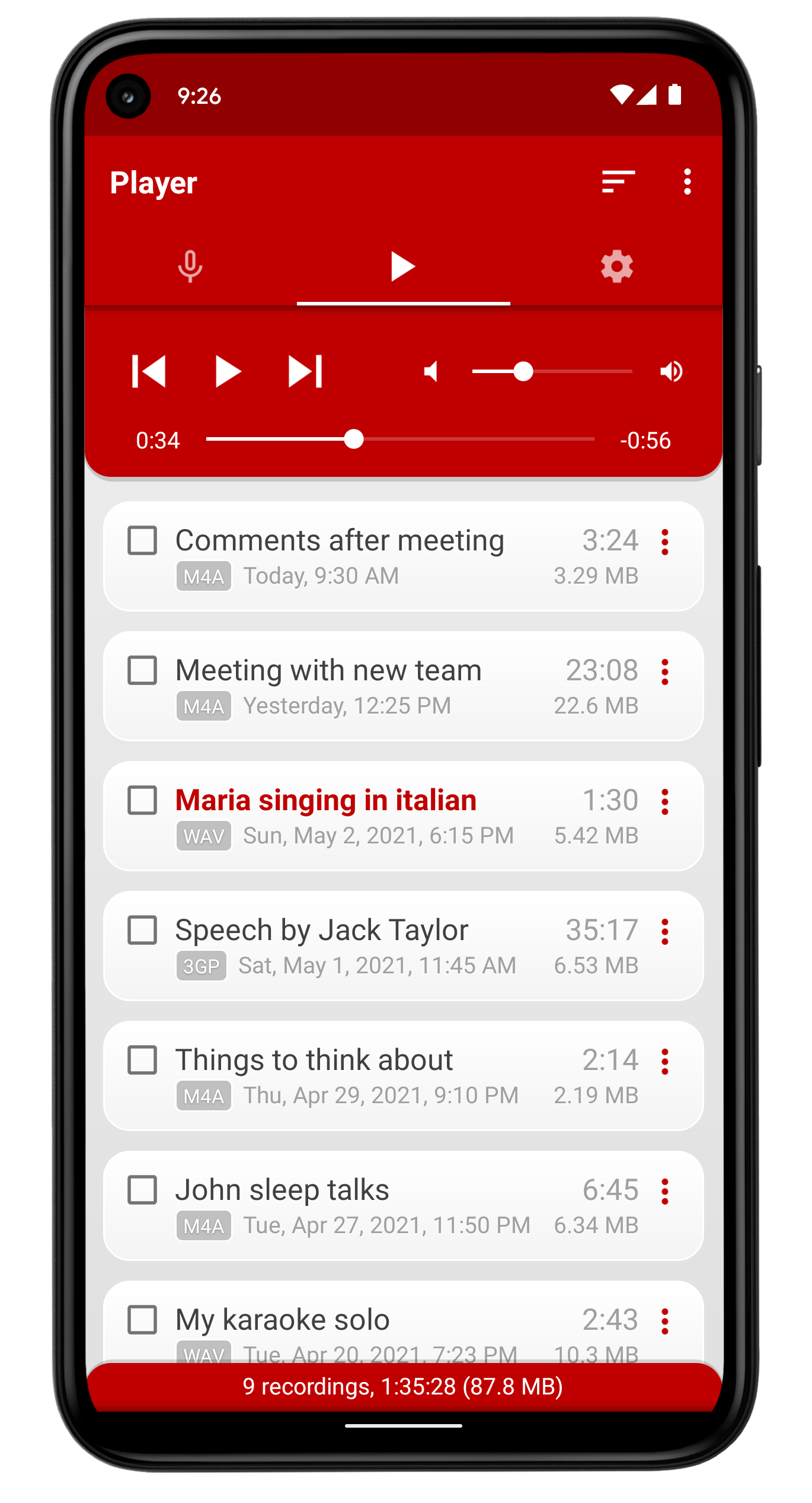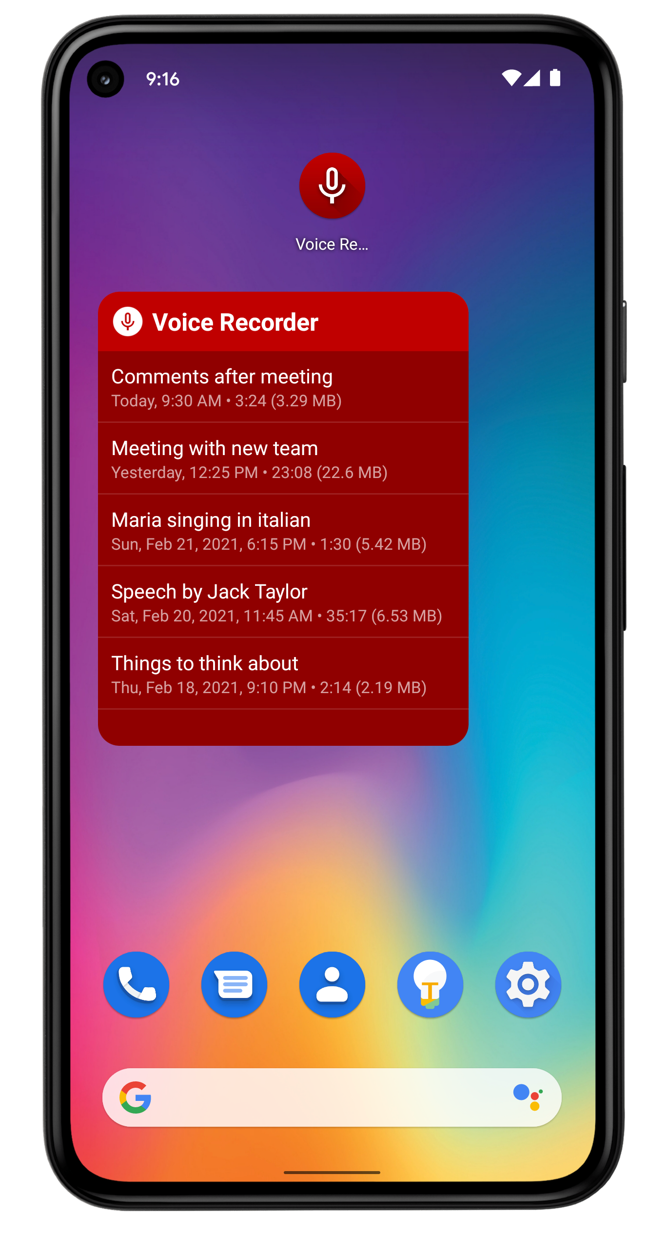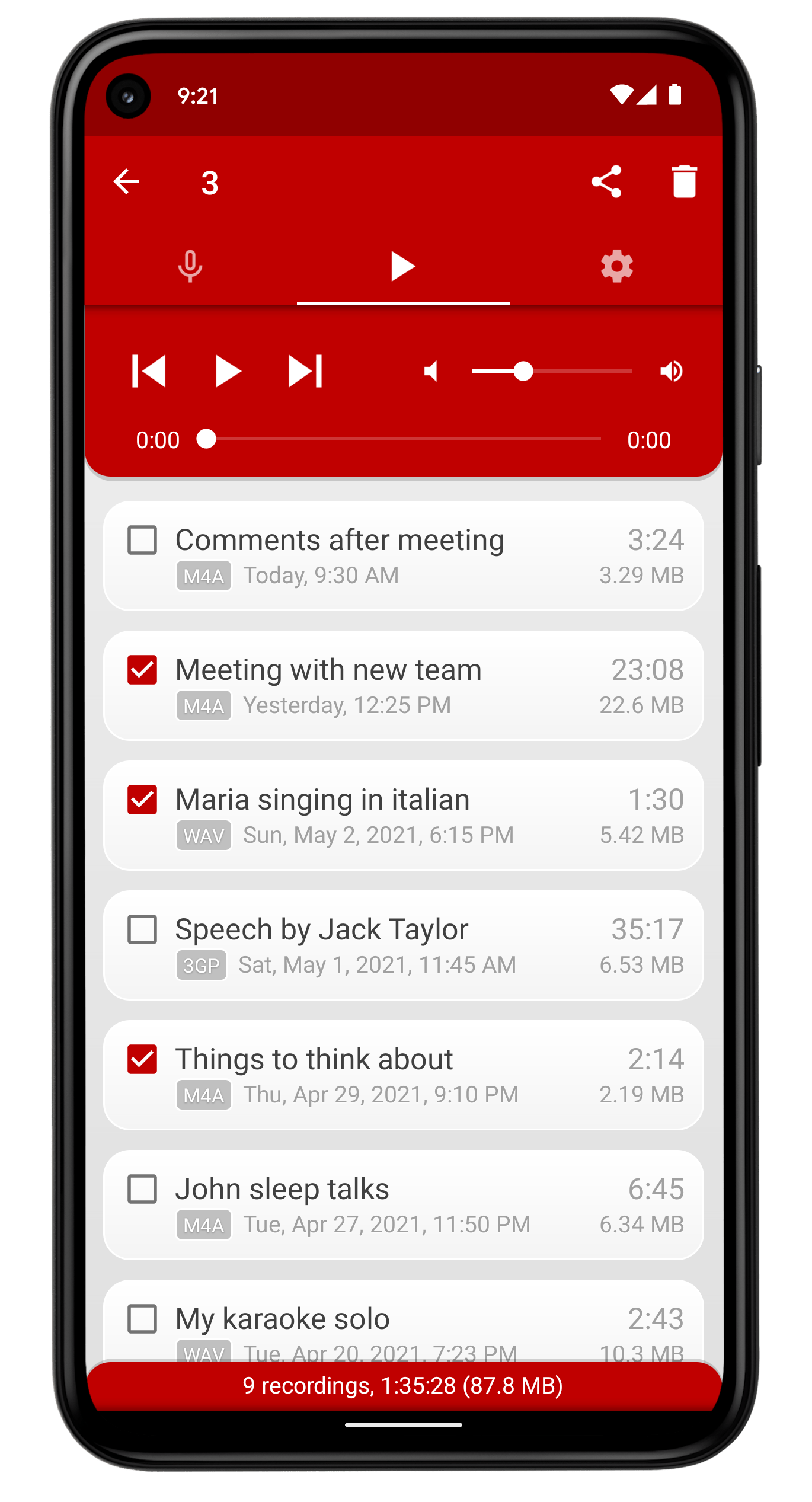 Rename, delete, or set recordings as ringtones, alarms, or notification sounds.