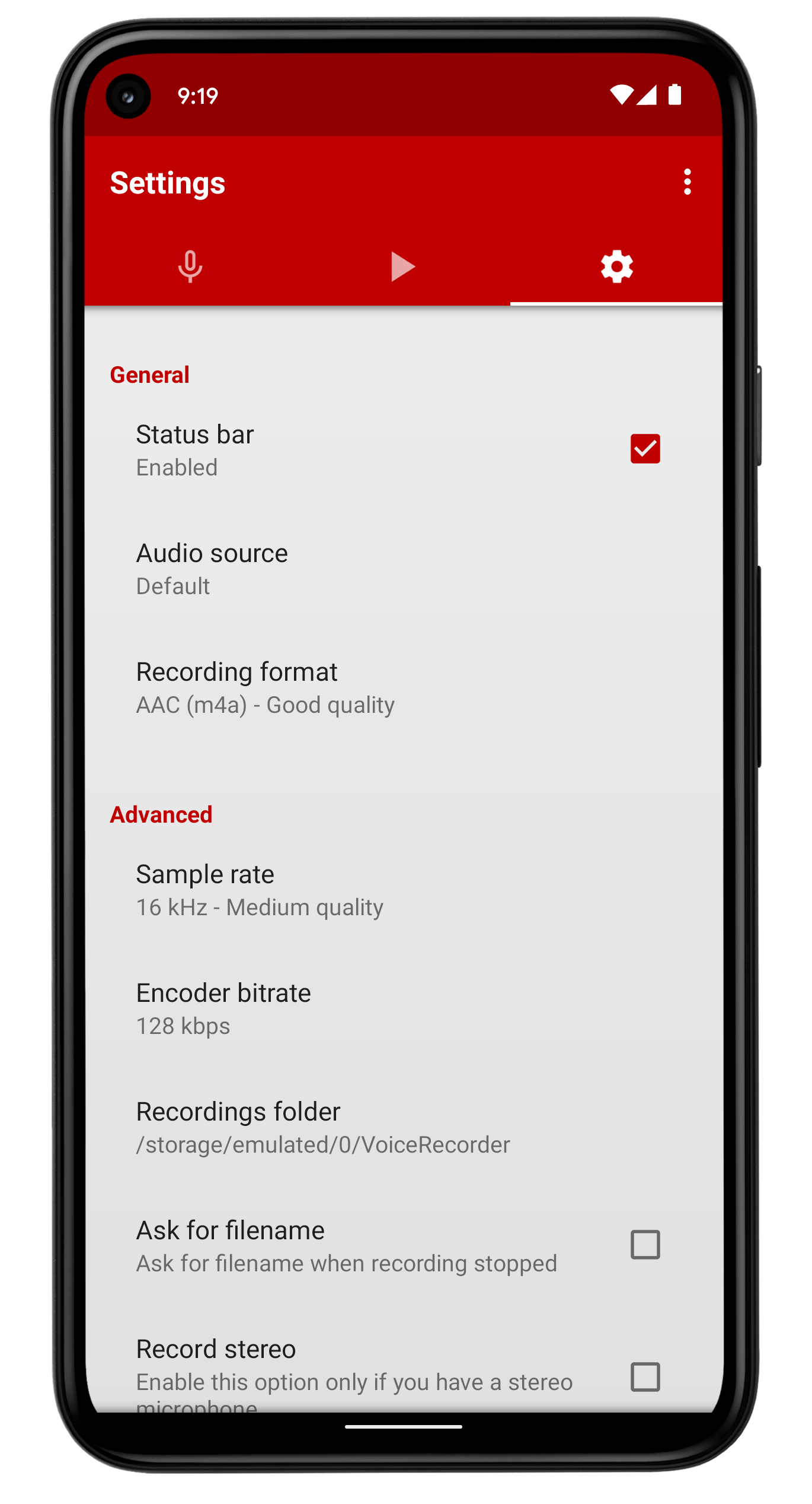 Blinking LED notification to indicate recording/playback status when the screen is off (for devices with notification LED).