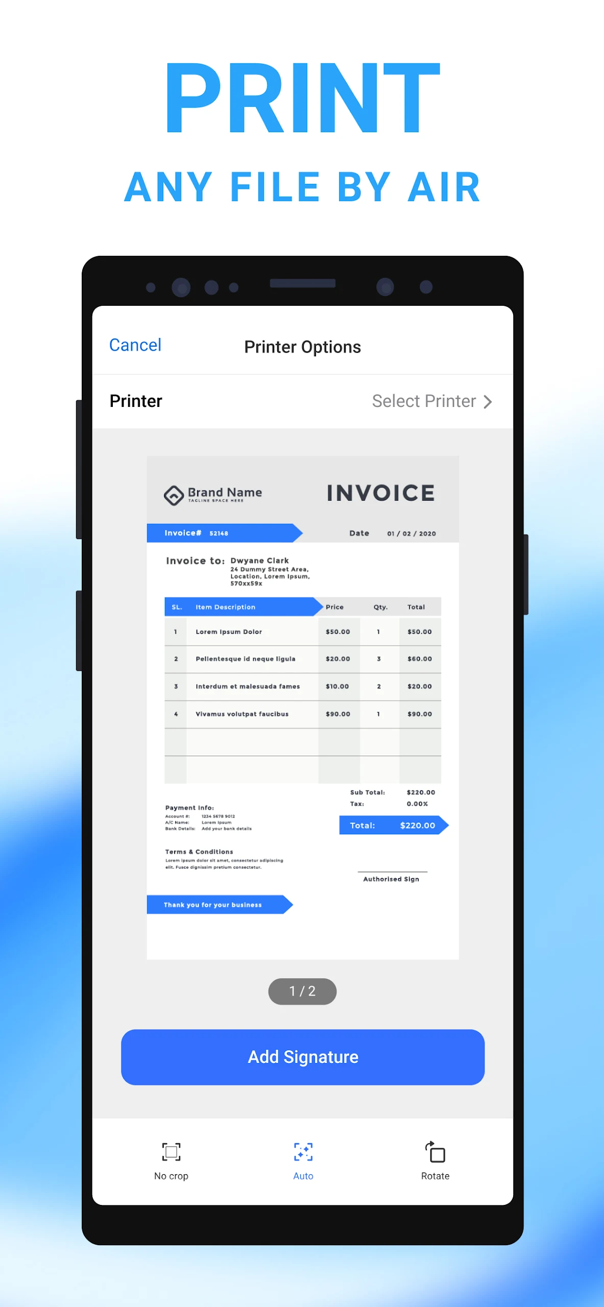 You can conveniently add signatures and print text directly from your Android device when connected to a printer.