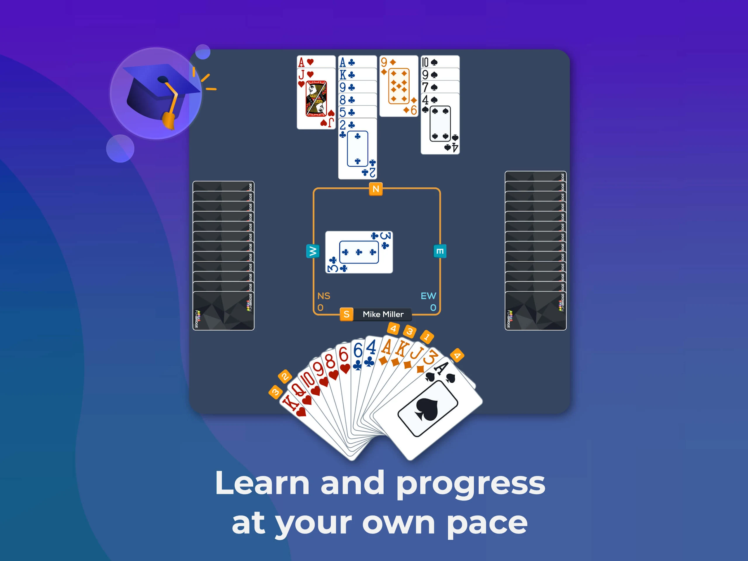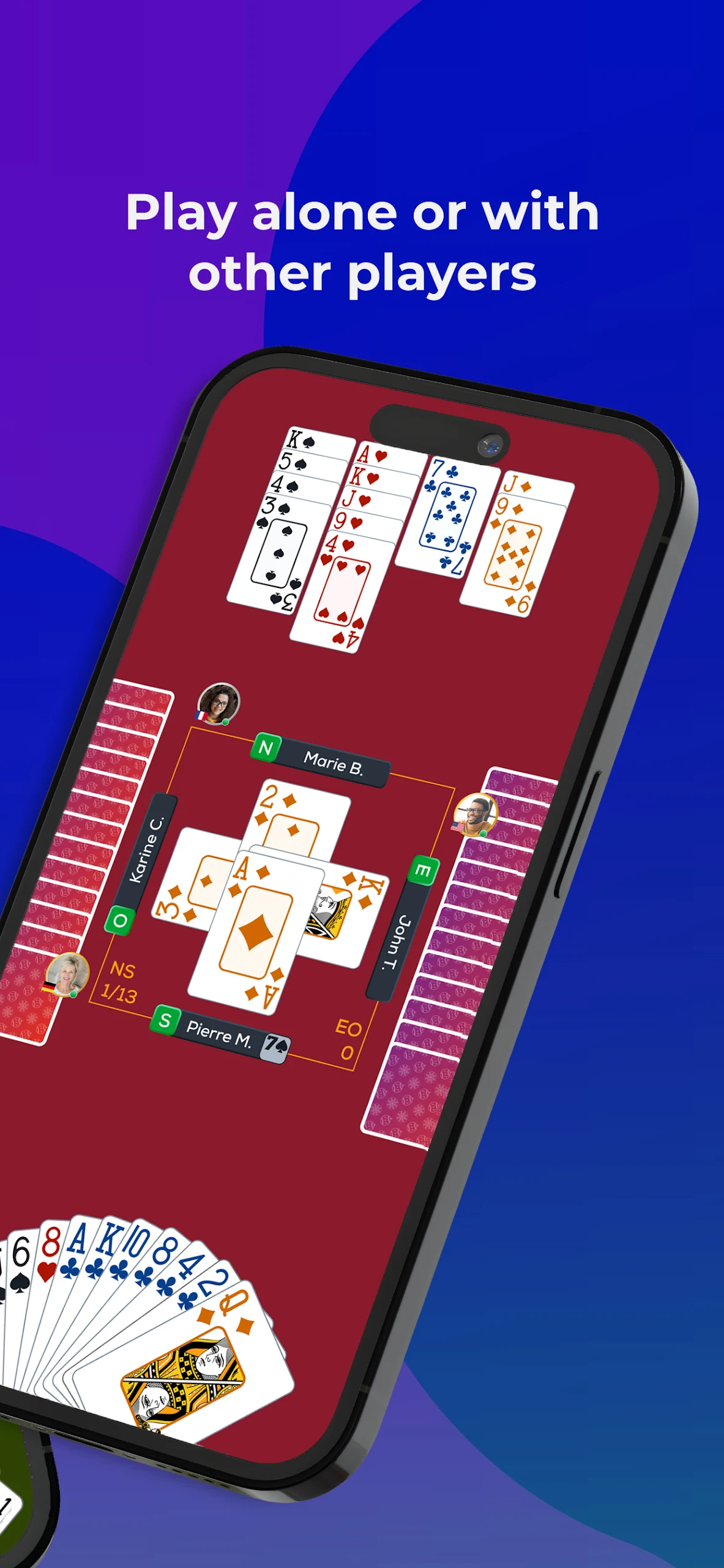 Funbridge is an online bridge game that allows you to learn and play duplicate bridge anytime, anywhere.