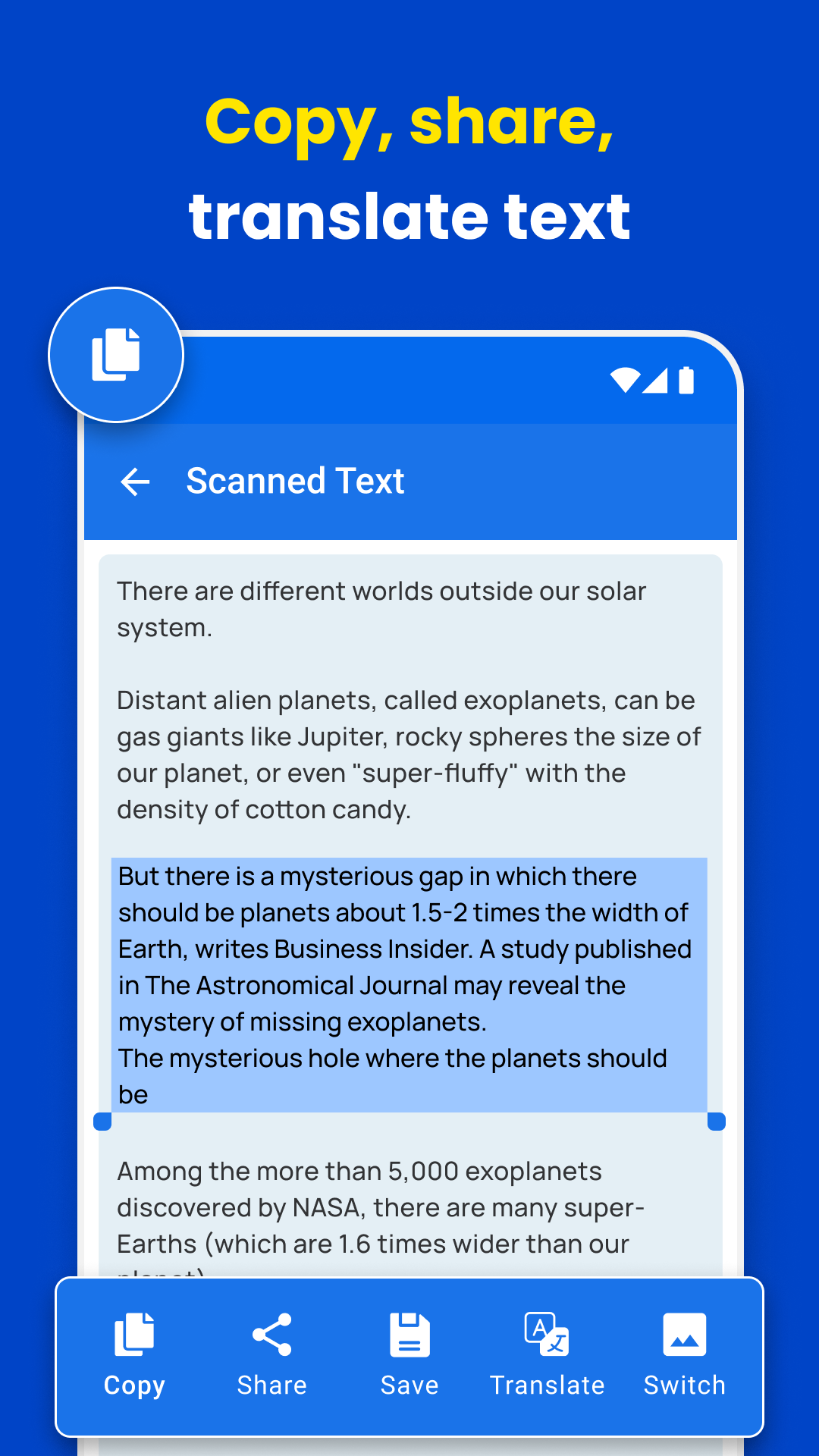 1.One Click, Copy Text Facility:Easily copy extracted text with just a tap。