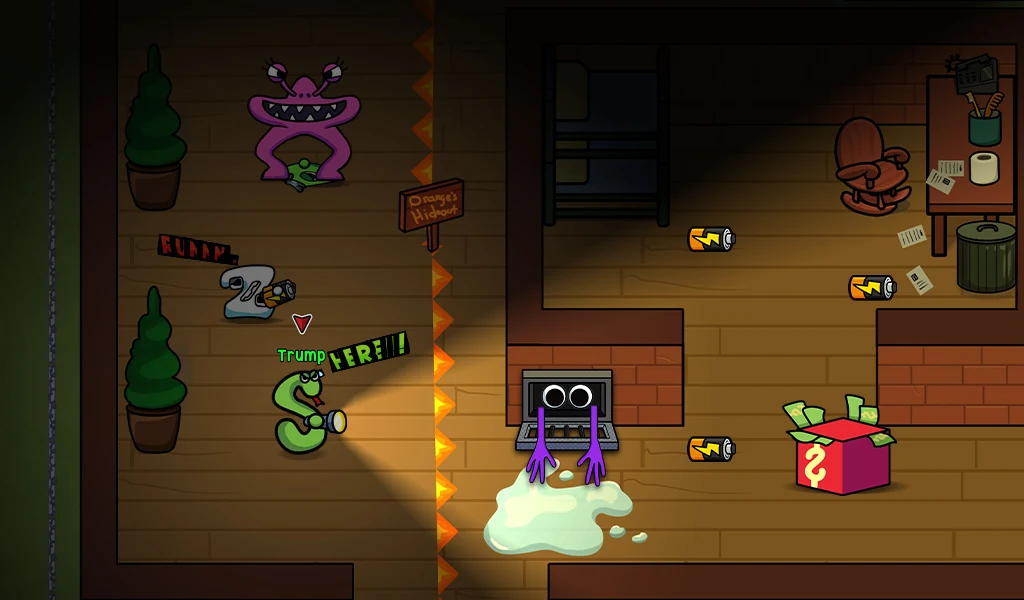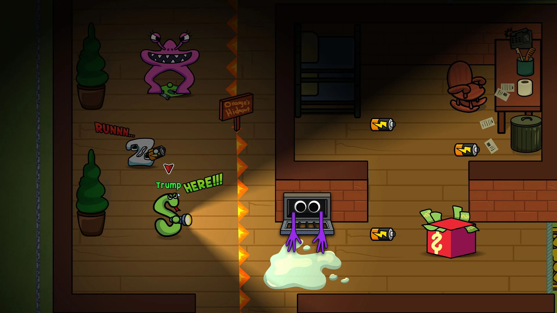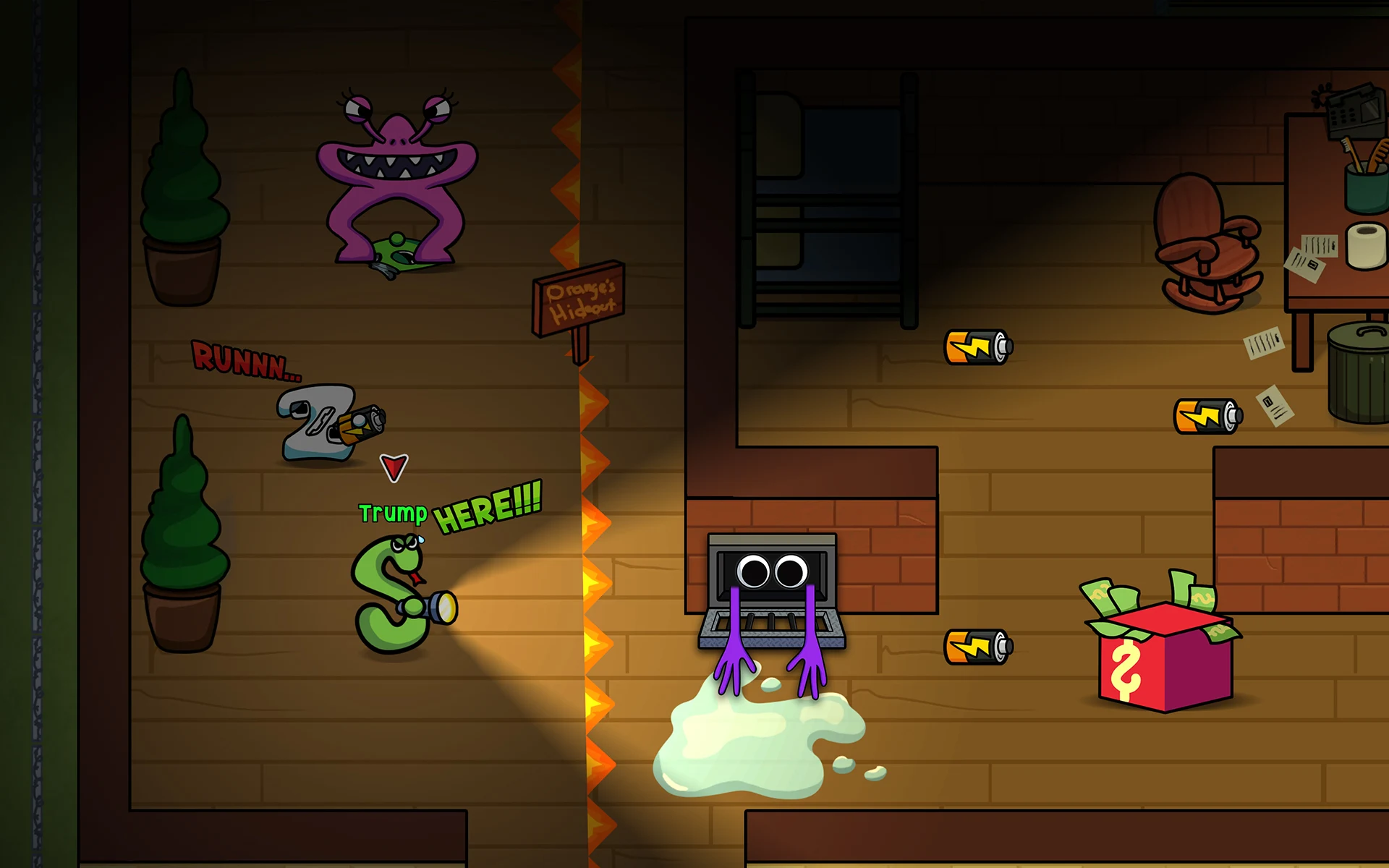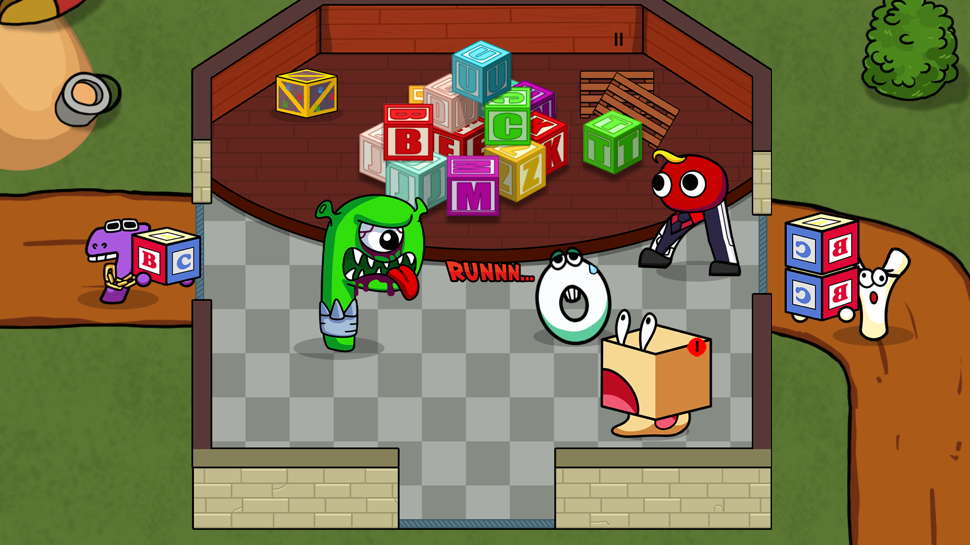 ✅ Tap the “box” button to hide from the alphabet monsters.