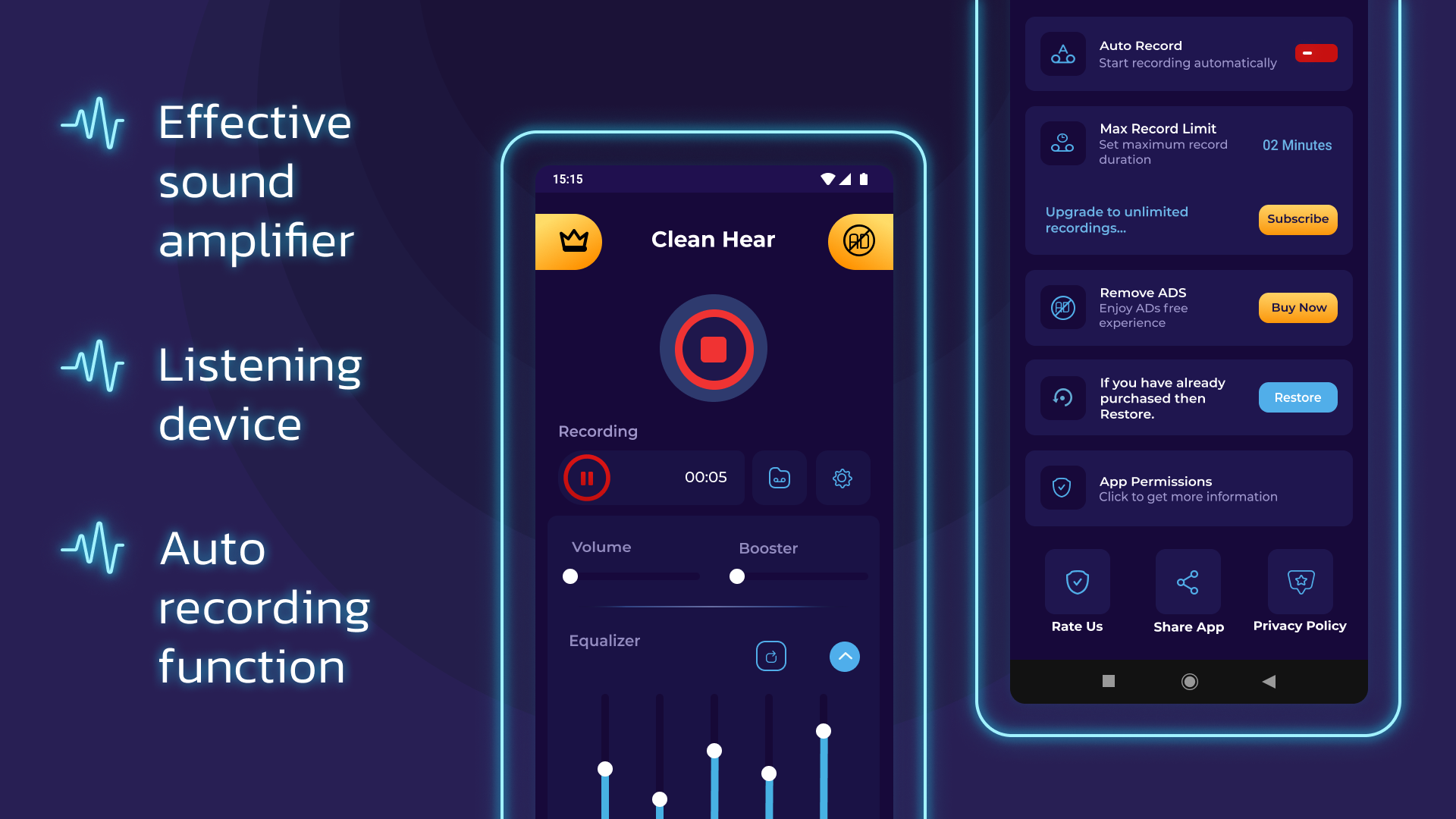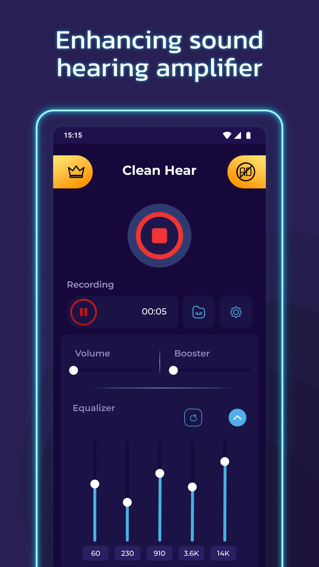 Do you wish for better hearing? Are you looking for a tool to amplify sounds? Look no further! With our exceptional sound amplification app, Hearing Clear: Sound Amplifier, you can enjoy crystal clear audio even from great distances. Welcome to the era of enhanced hearing!