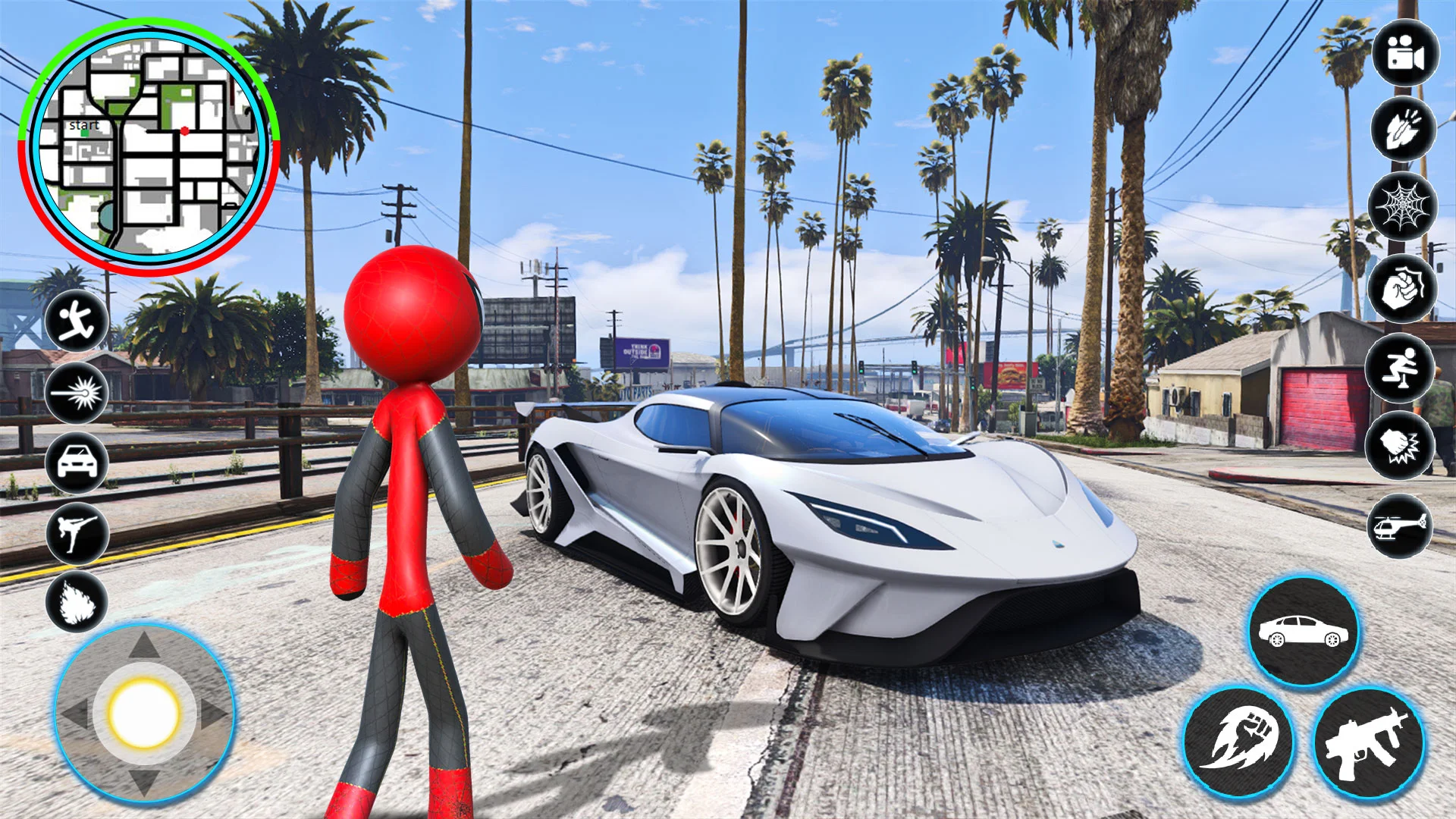Additionally, *StickMan Rope Hero Spider Game* is characterized by diverse game content and tasks. Players face numerous objectives, such as rescuing hostages and dismantling criminal bases. The game also includes hidden tasks and rewards, encouraging continuous exploration and challenge for greater rewards and fun.
