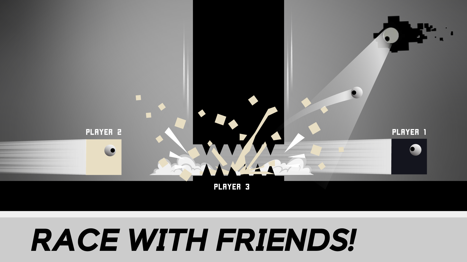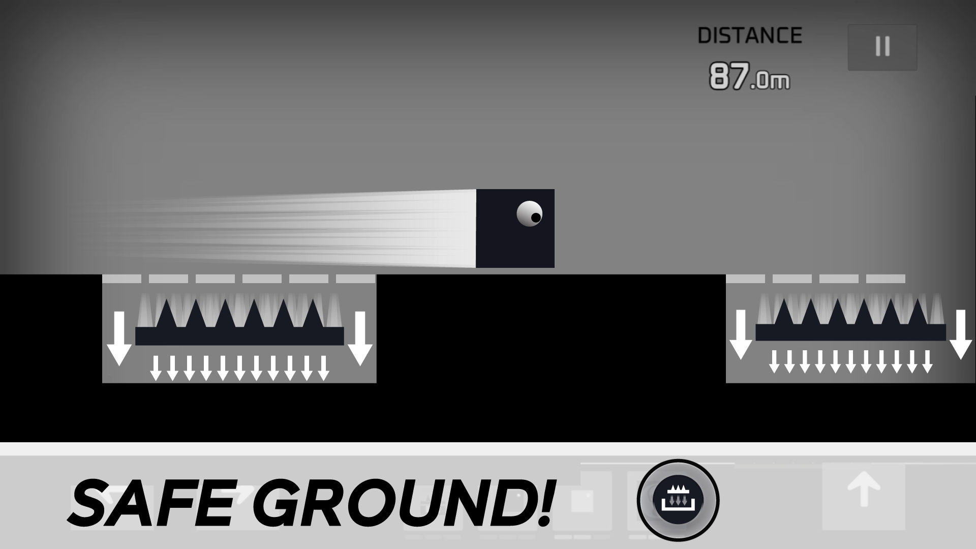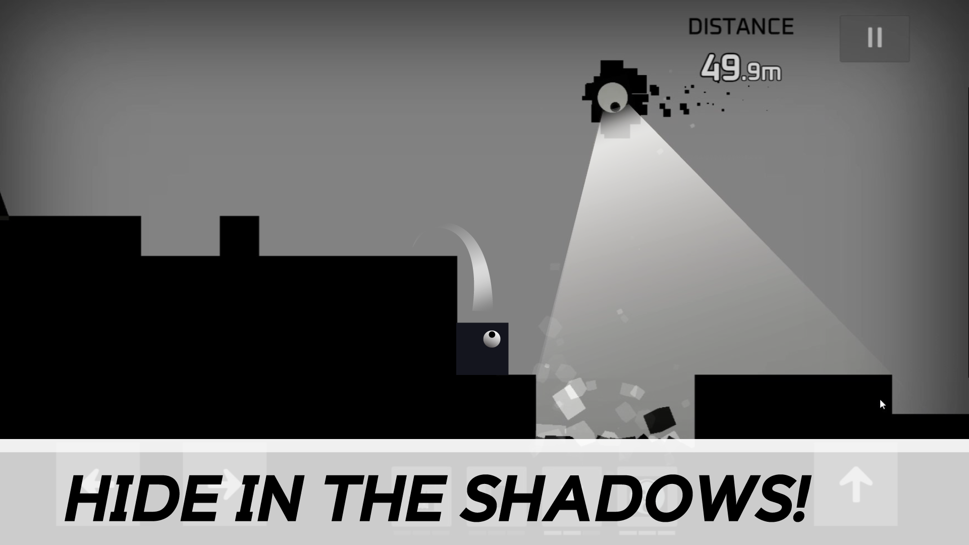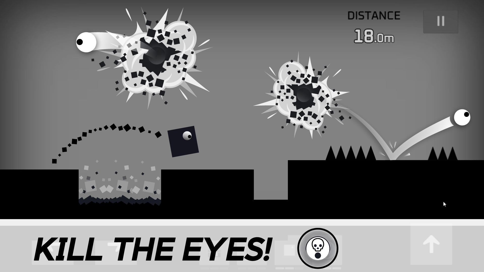 Players control a movable black block, maneuvering through various paths while dodging assaults from The Eyes—enemies capable of detecting movement. Although the gameplay resembles classic endless runner mechanics, it demands active player control in a 2D environment primarily colored in black to facilitate blending in with surroundings.