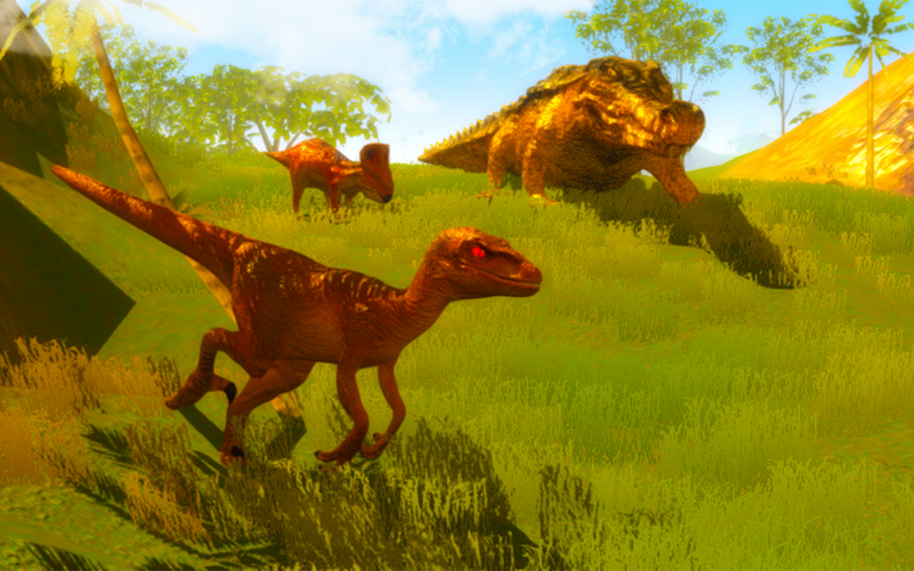 Maintain your health and energy through hunting and resource management, expanding your territory while battling rival dinosaurs.