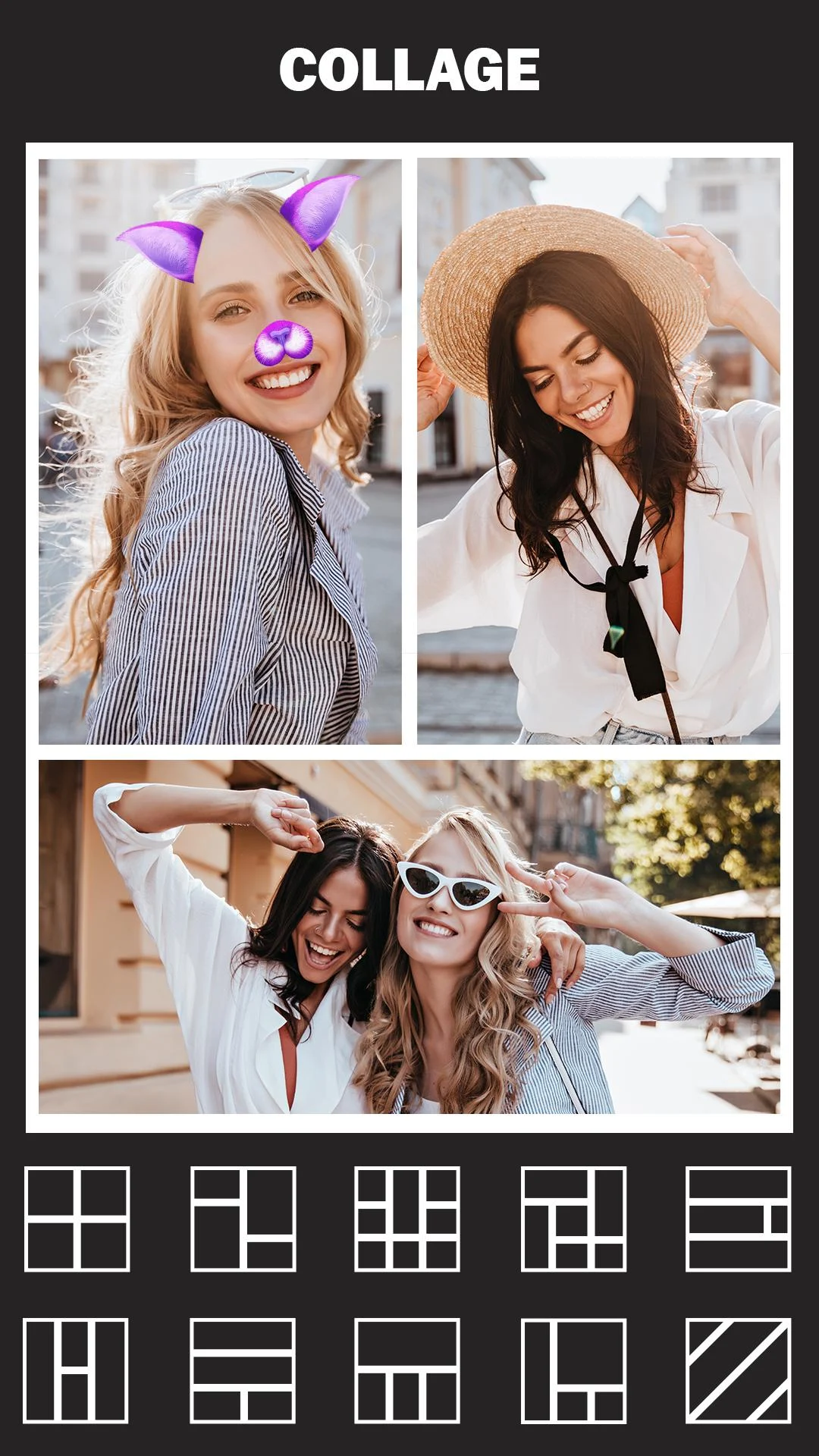 Confidently edit photos with makeup tools, creating stunning images that can be easily combined into collages.