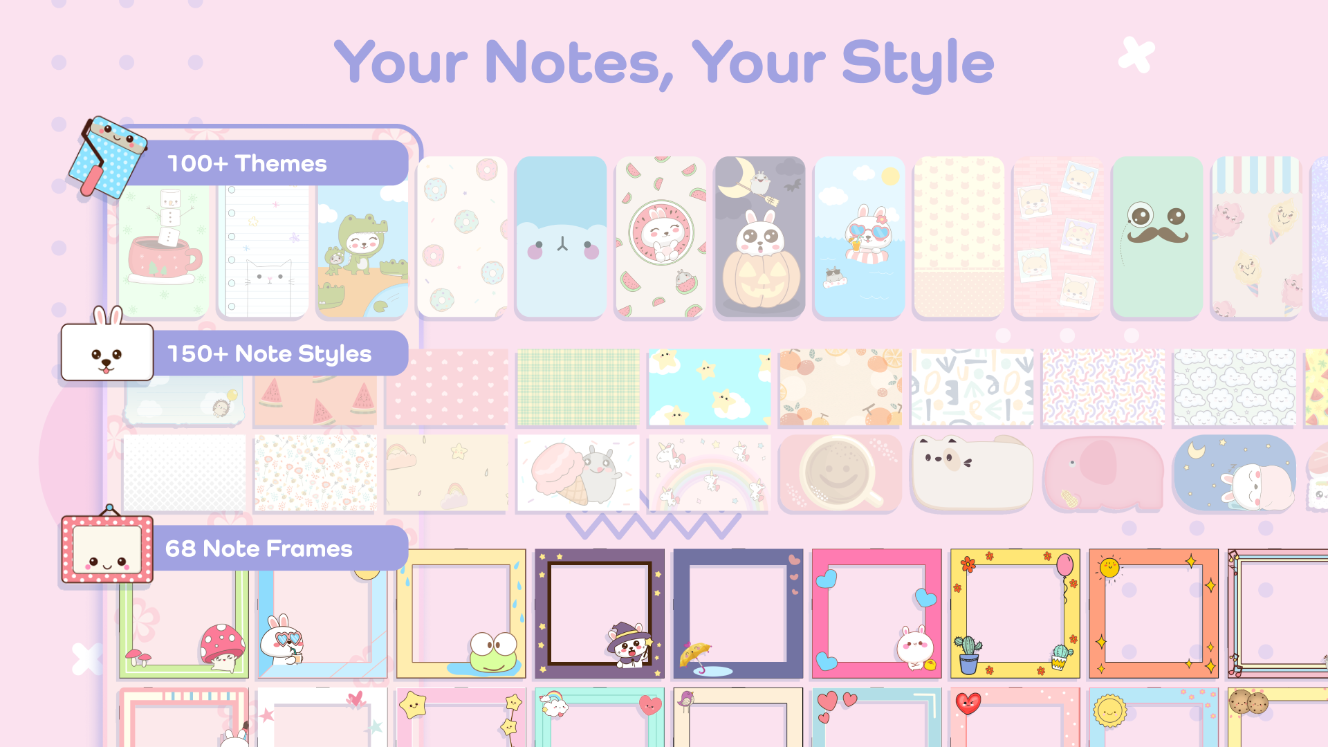 Spice up your notes by adding various stickers, drawings, and frames.