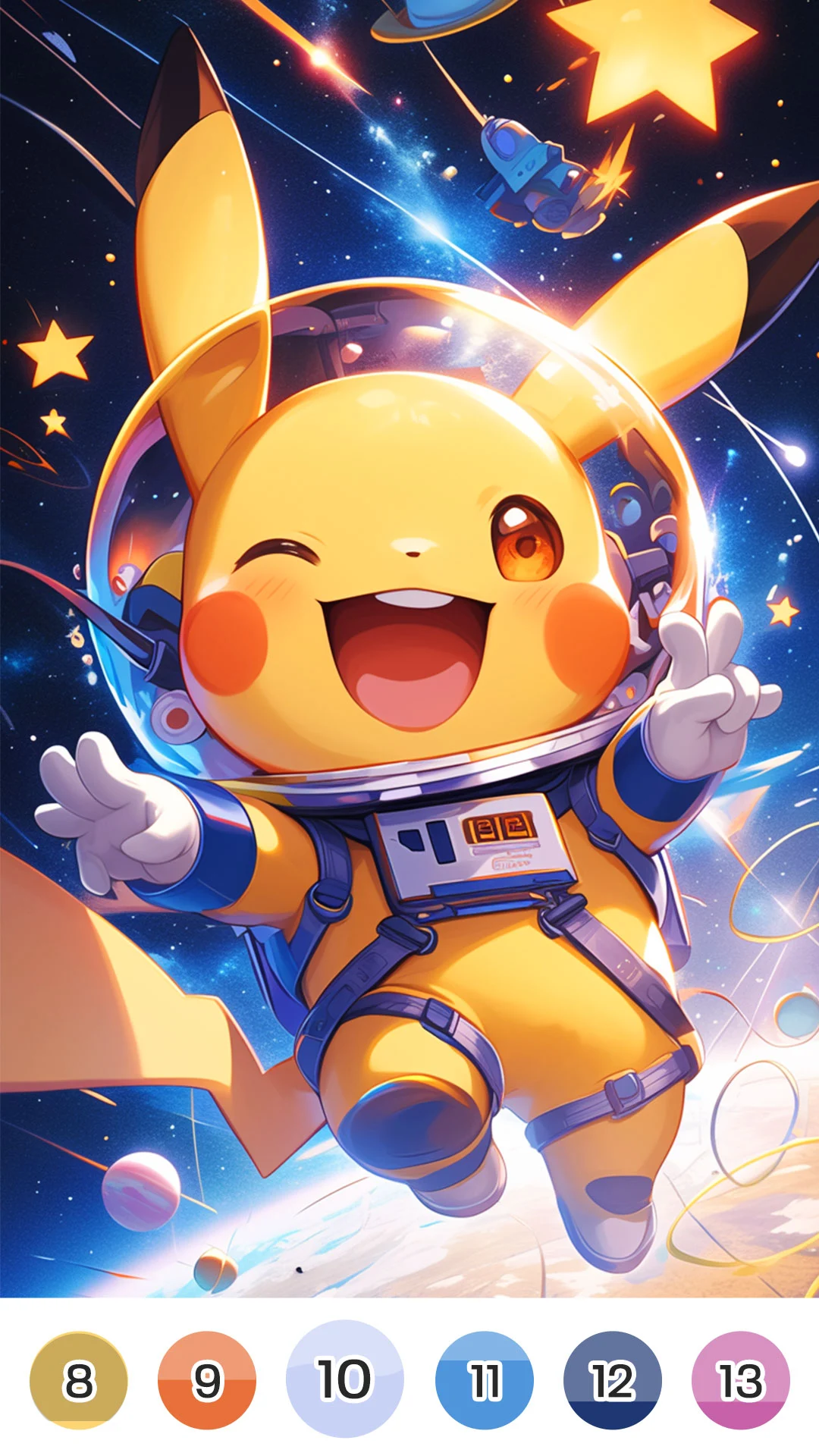 Your task is simple: click on the screen to begin coloring the pictures. Each picture is divided into sections marked by numbers that correspond to different colors. Find the number that matches the color you need to fill in and complete the artwork.