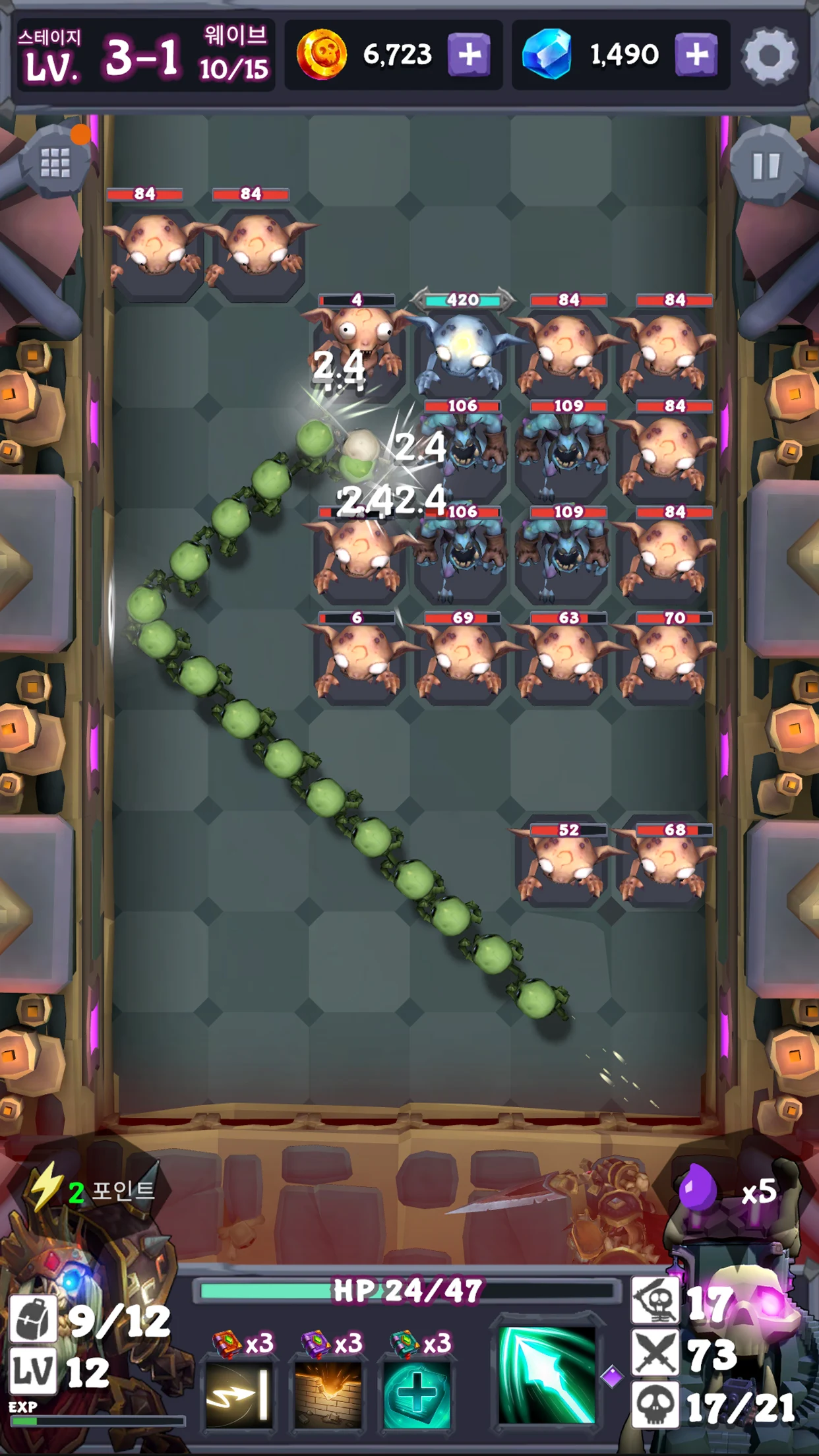 Players in this game utilize skeletal soldiers that reflect off the screen's edges to inflict damage on incoming enemies. By adjusting the angle of reflection, players can effectively target demons while also ensuring their soldiers bounce back after taking their shot. As gameplay progresses, players can evolve their soldiers and unlock new skills and weapons, integrating RPG elements such as an enemy evolution system and combat mechanics involving equipment and skills.