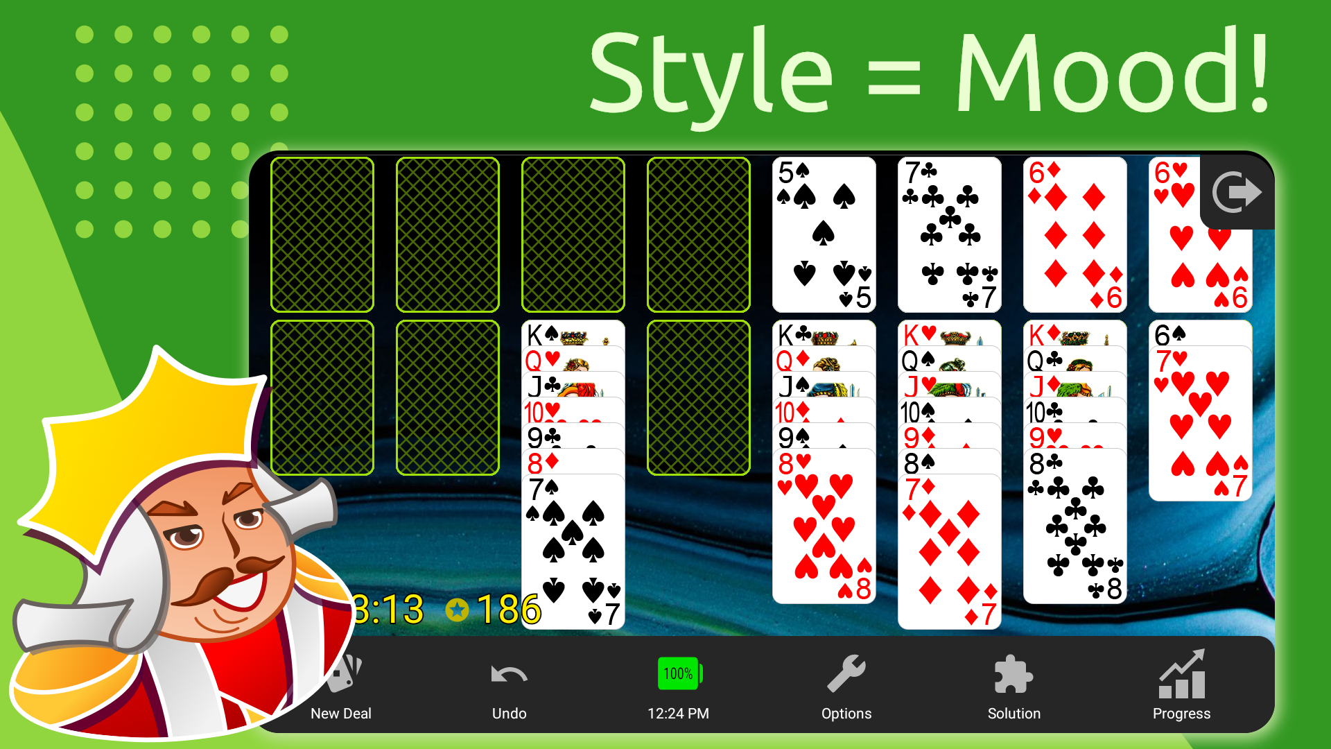 This particular FreeCell version has been specially designed for Android devices and boasts 25 customization options. Players can choose their preferred card deck, background, and other settings, creating a personalized FreeCell experience that reflects their style.