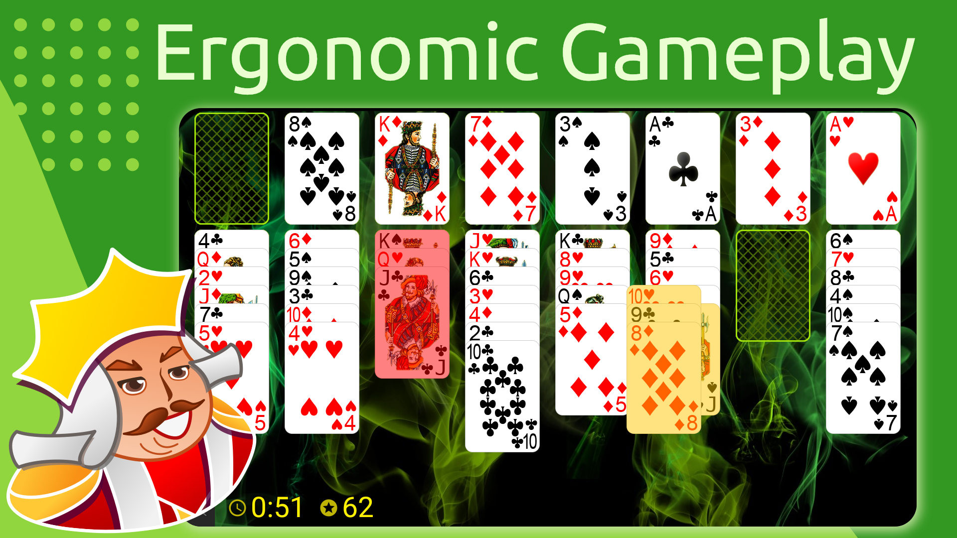 Softick’s FreeCell version stands out due to its user-friendly touchscreen controls: it only moves cards when it's appropriate, ensuring the gameplay remains seamless. With the help of highlighted hints, players can focus on crafting a solution rather than struggling with controls.