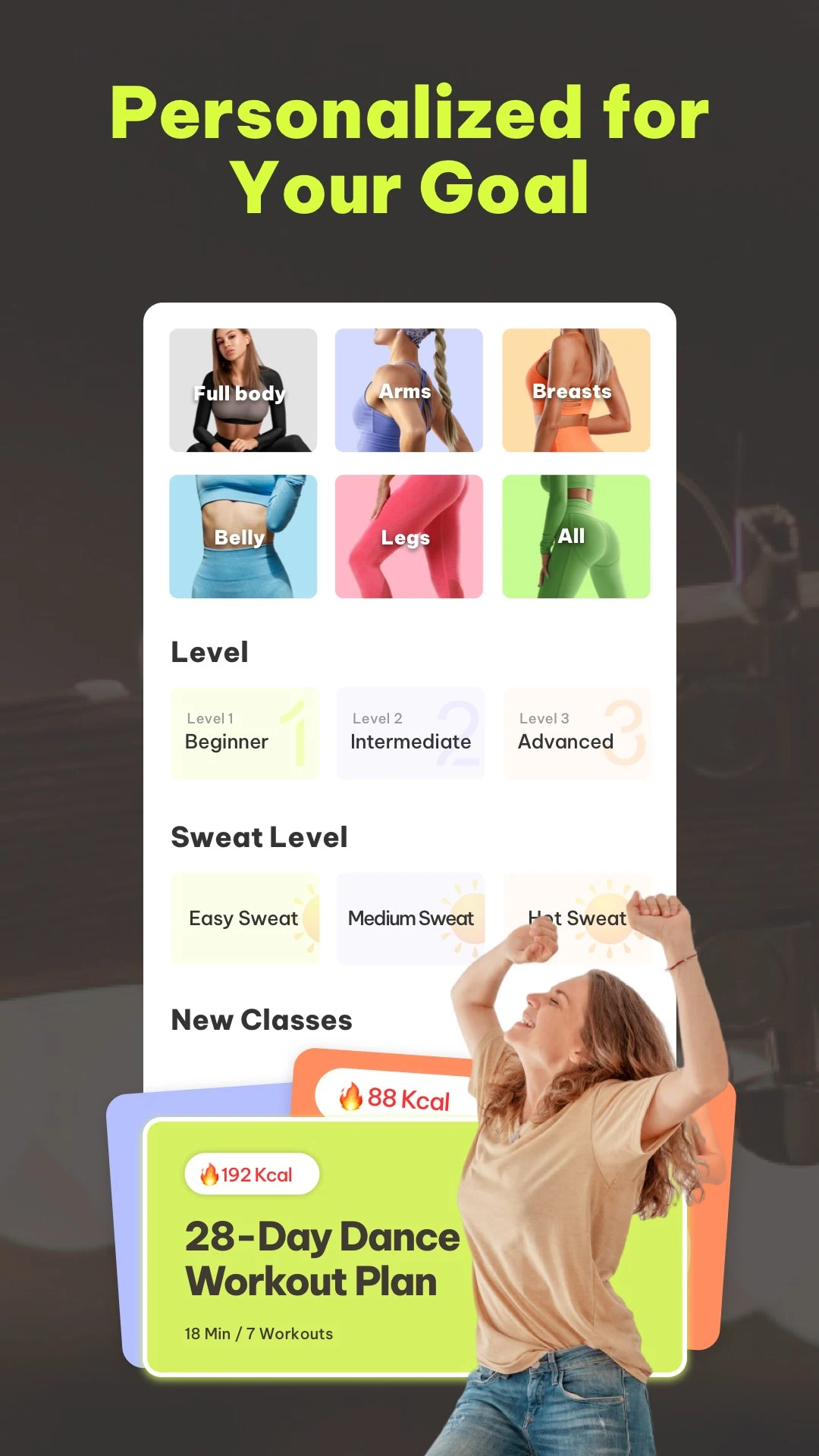 Each dance workout is designed by fitness and dance experts to help you achieve specific goals. You can choose workouts targeting your entire body or focus on particular areas like abs, back, or legs for a more customized practice.