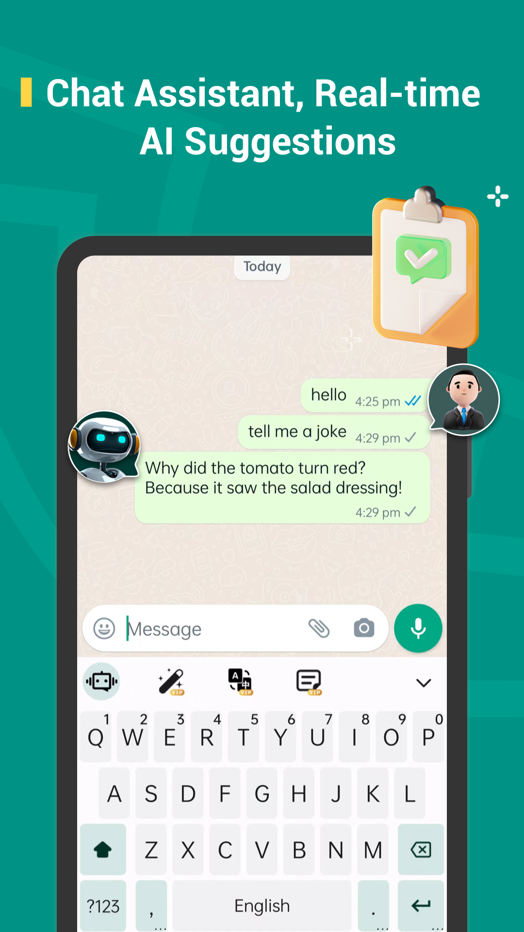 Enhance your typing experience with the AI Keyboard MOD APK, your ultimate AI assistant right at your fingertips! This innovative keyboard, powered by OpenAI's GPT API, is designed to make your conversations smarter and more efficient, whether you're drafting an email, messaging friends, or browsing the internet.