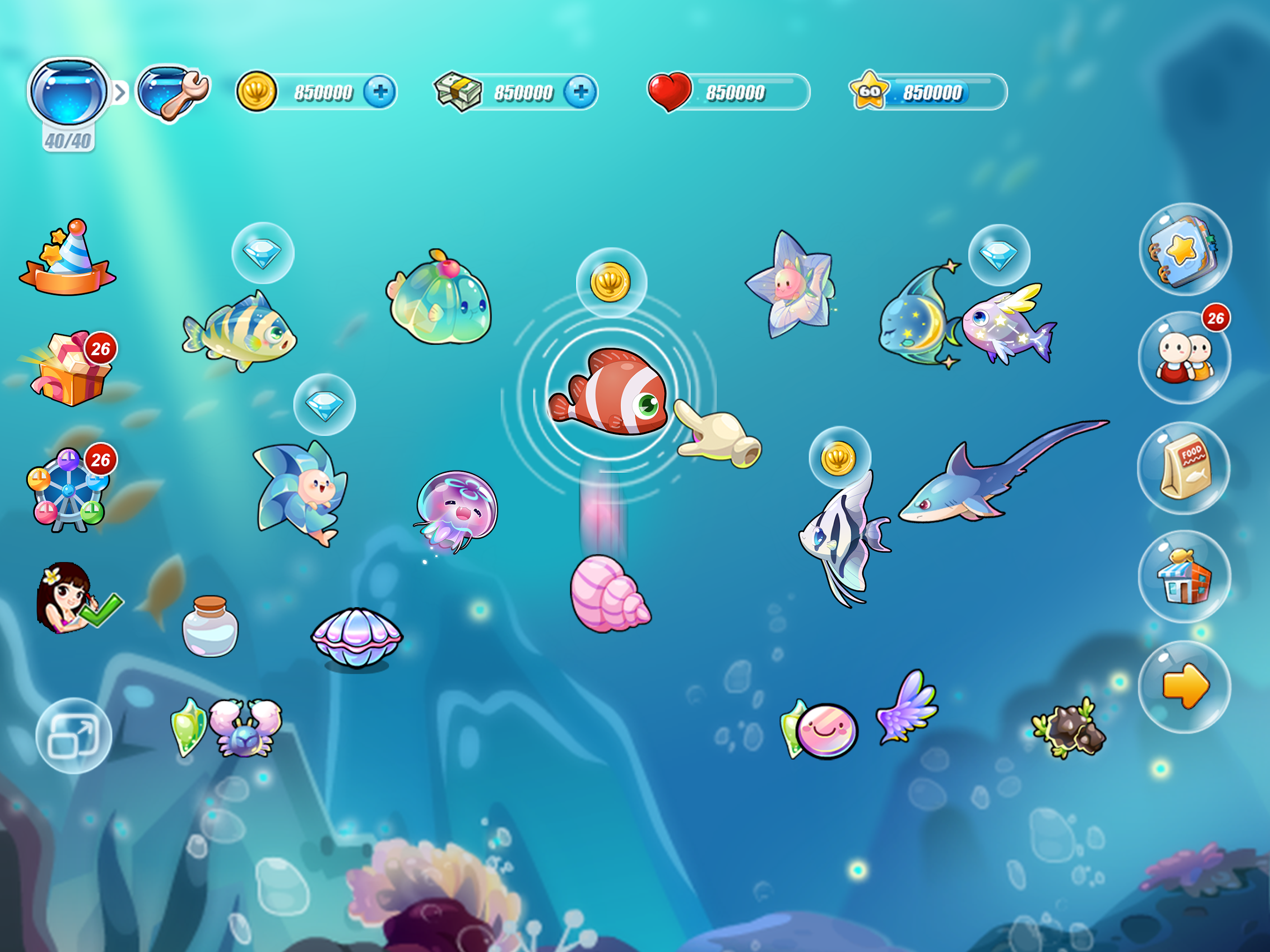 Choose from more than 3000 fishes, each possessing unique personalities like Cutie, Funky, Sweety, and Geek. No matter their traits, you can collect them all!