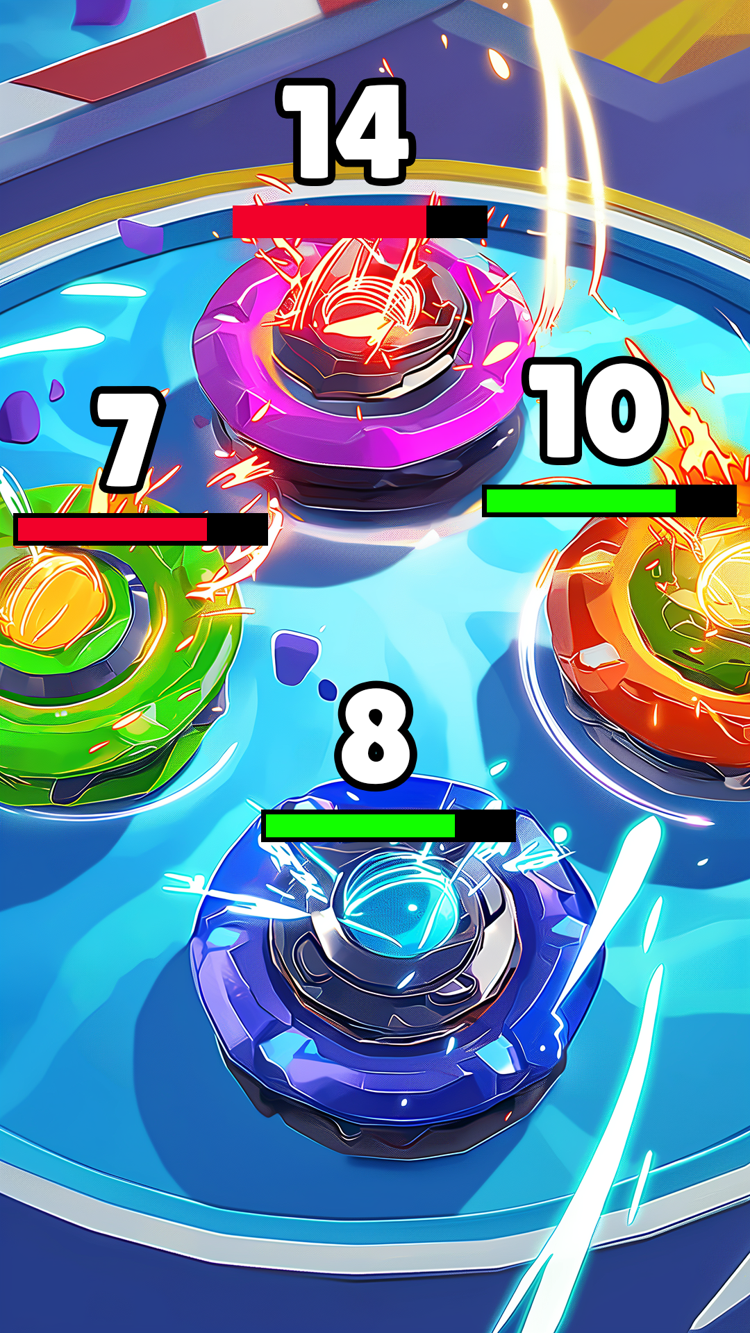 ⚔️ Prepare for intense spinner battles filled with adrenaline! Each time you merge, your blades gain strength, readying you to confront any opponent.