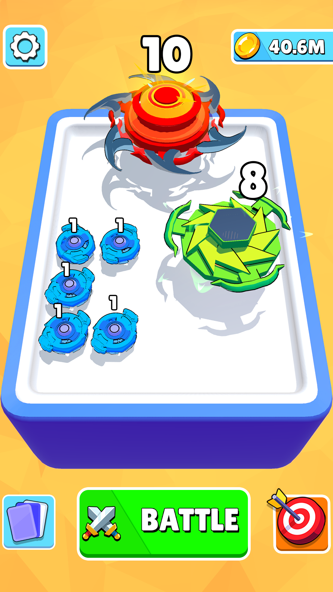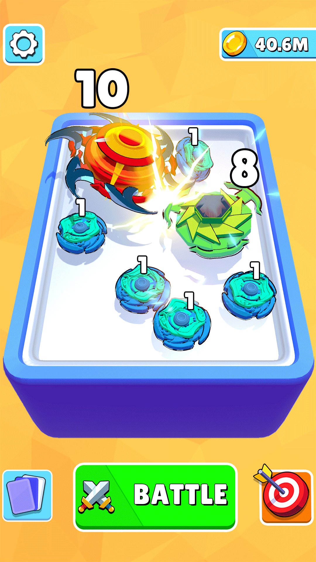 Experience classic super spin fun in a fresh and exciting way through merge spinner fights.