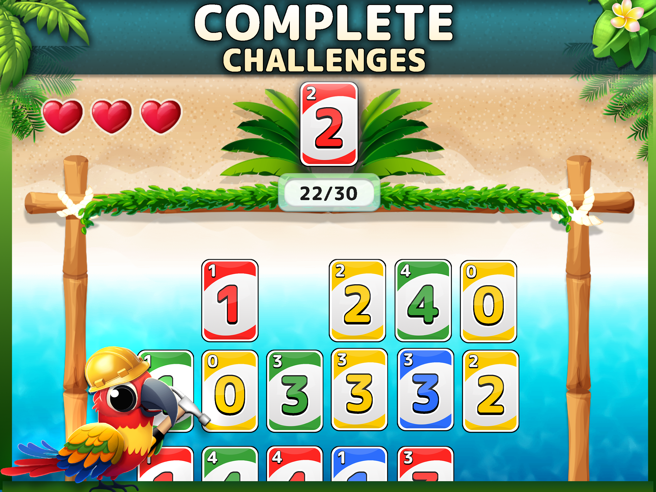 No internet? No problem! Battle through over 10 phases in Adventure mode offline against the computer. When you go online, you can pick between classic rules or the +2 Stacking option while selecting from various multiplayer rooms, such as Beach Cabana or Space Station. Compete with players worldwide and showcase your skills!