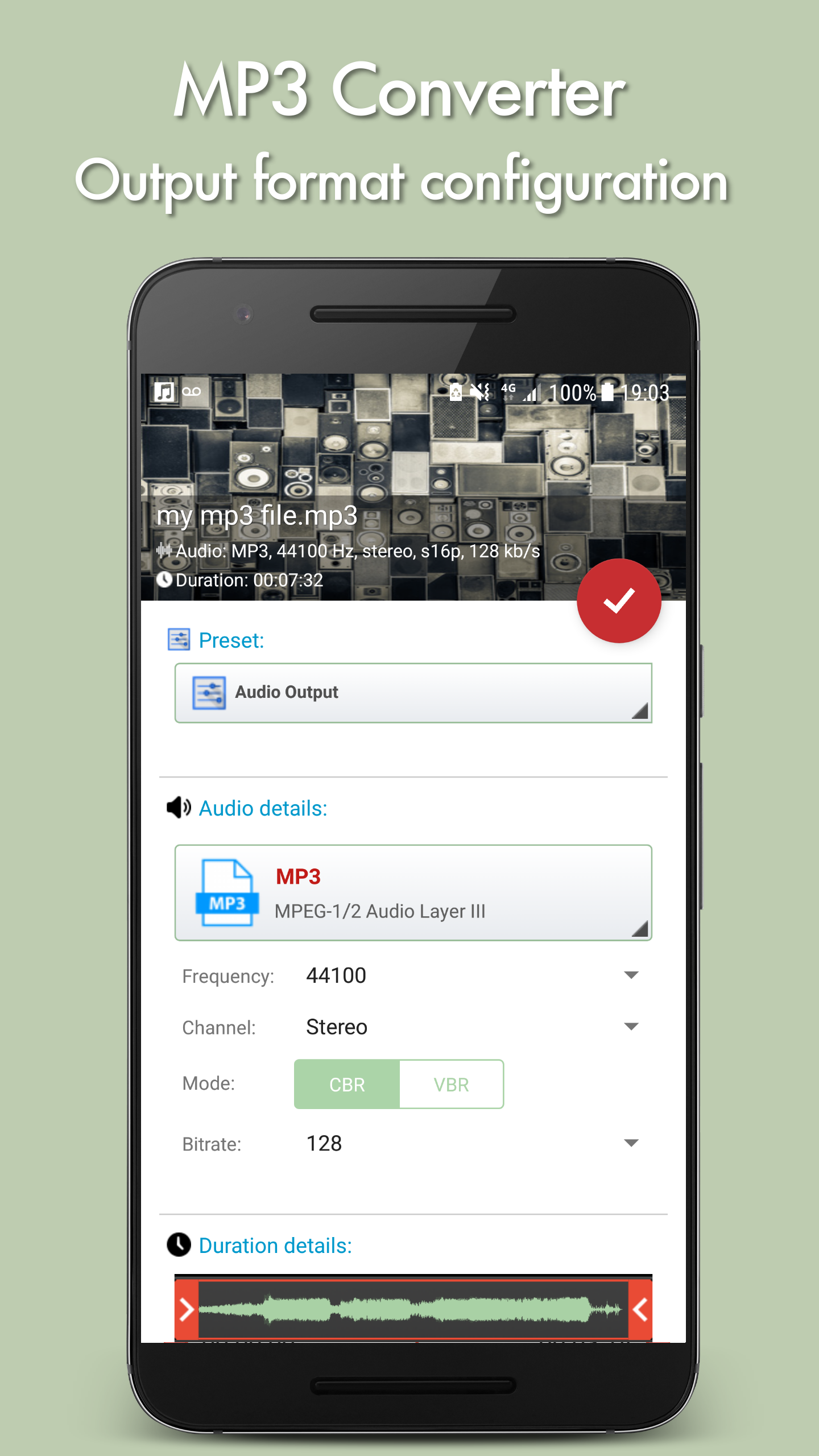 Fully customizable output format settings, including frequency, bitrate, channel, start time, and duration for part selection (Note: highest quality settings require an in-app purchase).