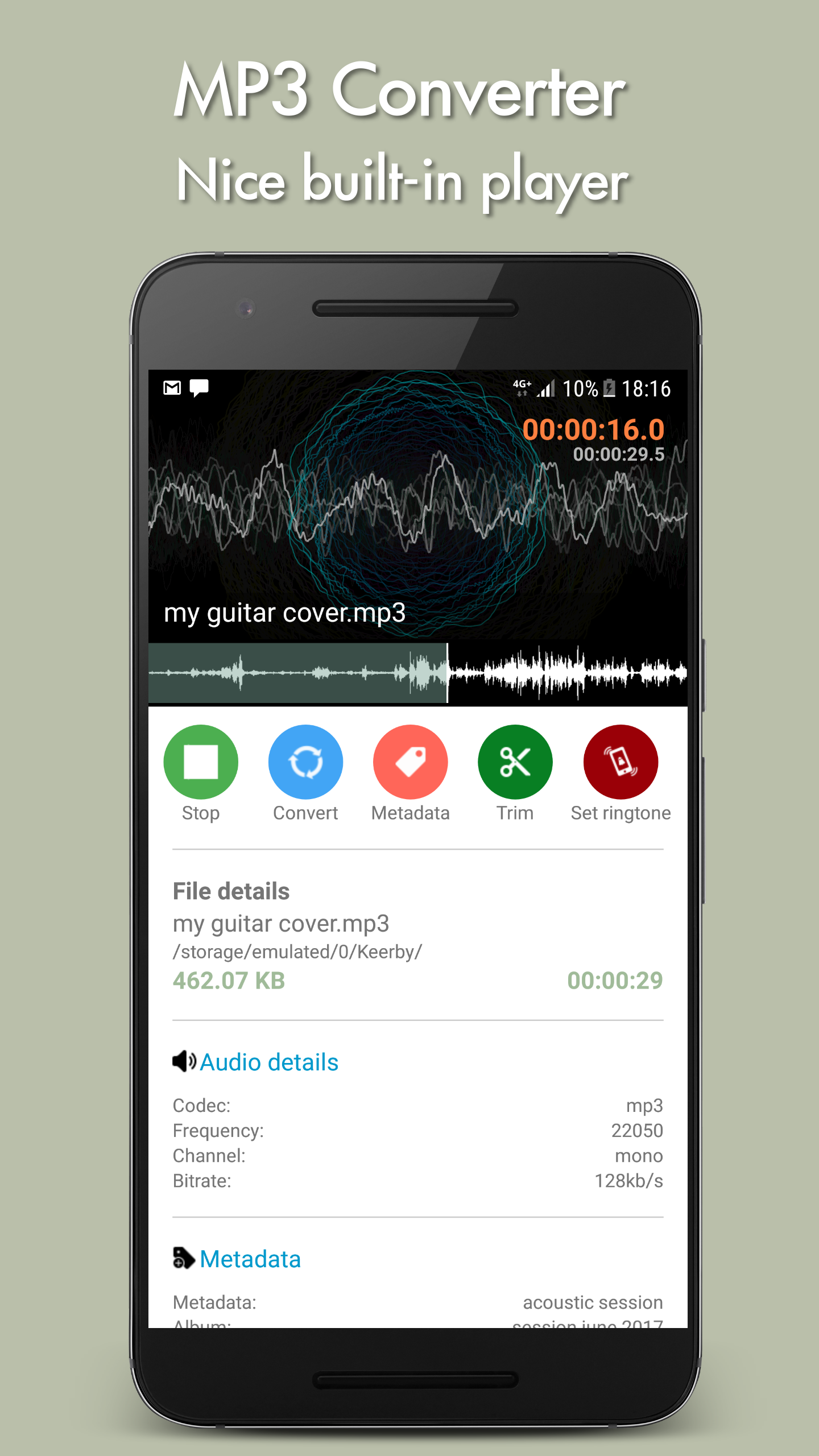 This application does NOT function as a YouTube downloader or MP3 downloader; it only converts sound files stored on your device.
