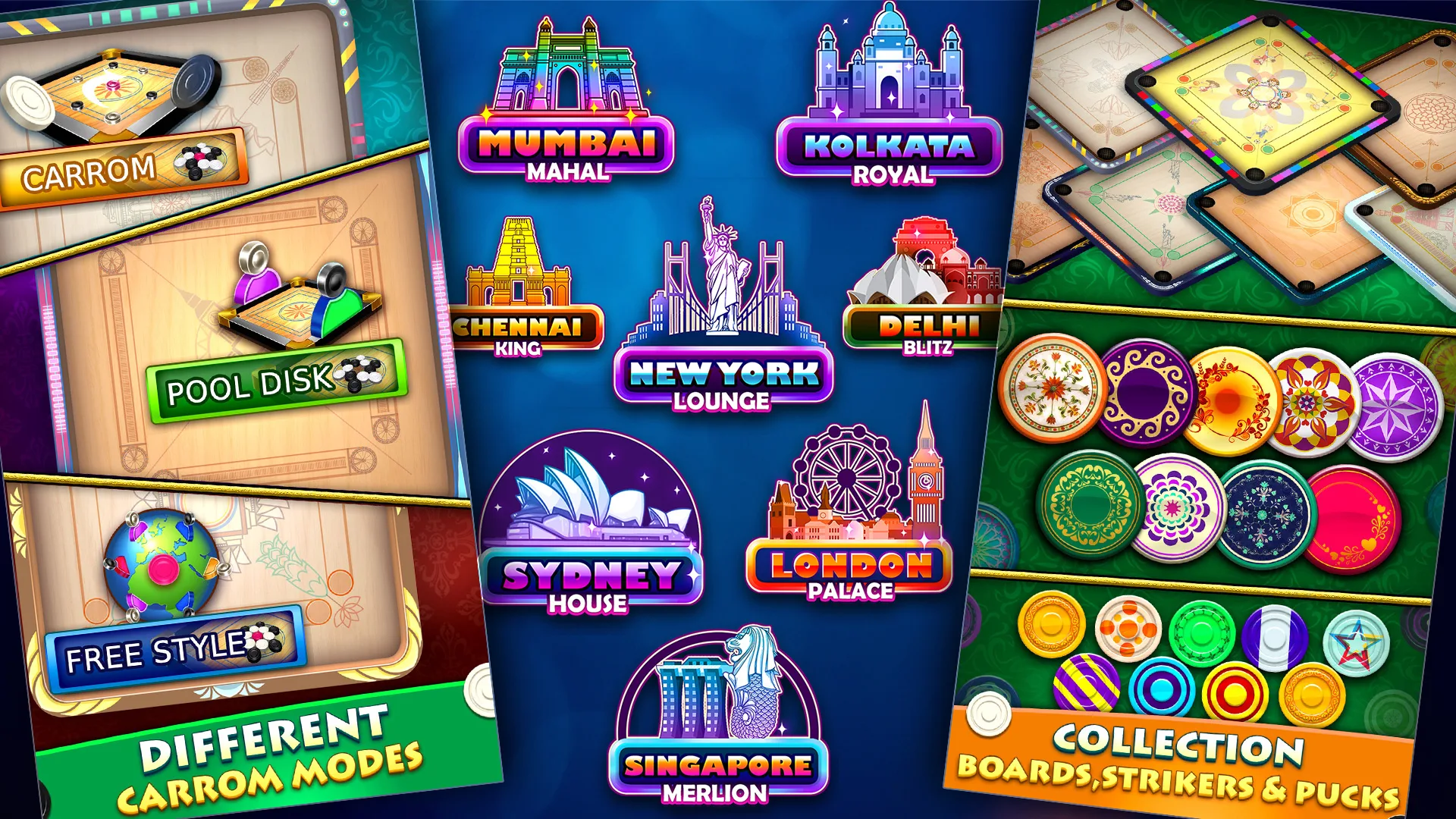 Dive into popular modes like Freestyle, Carrom, and Pool Disk available offline and online.