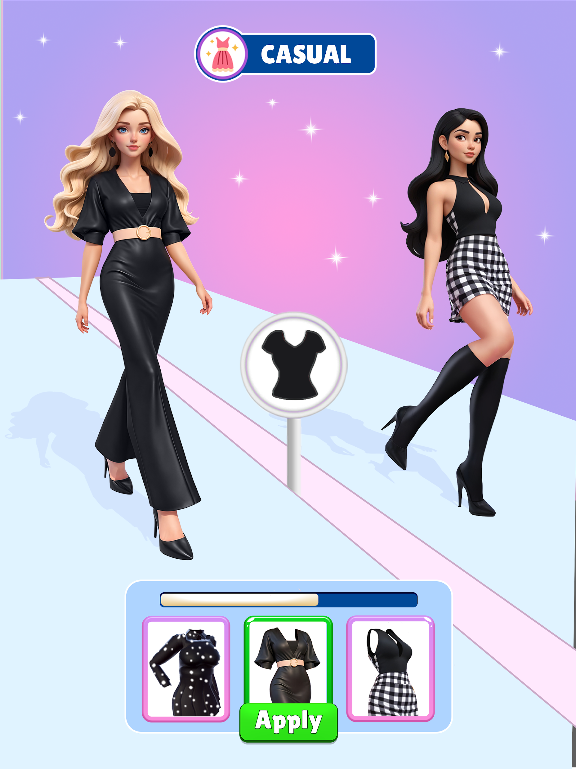 Get ready to step onto the stage of a renowned fashion show where you can win exhilarating catwalk battles!