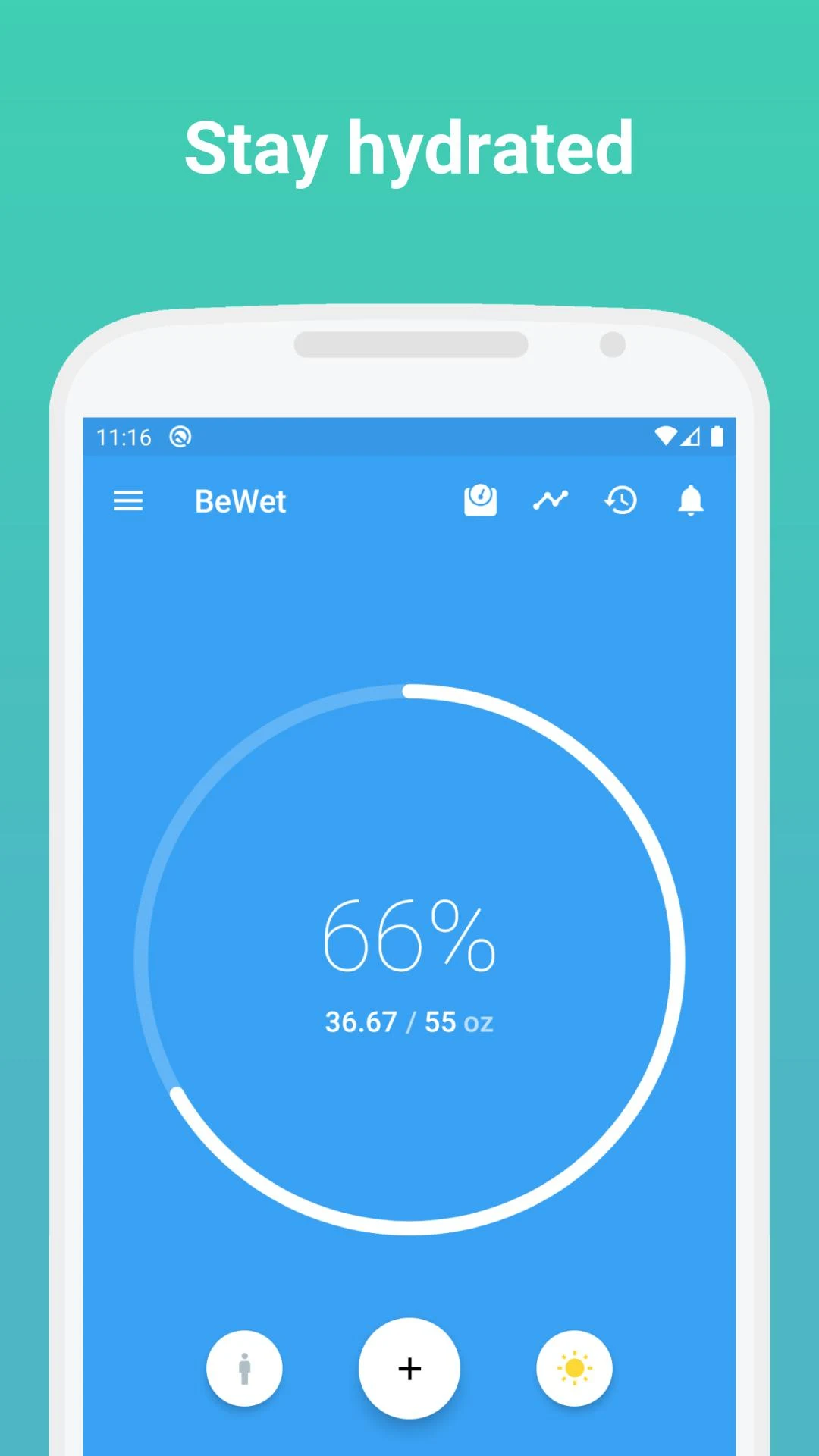 Regular water intake is essential to maintaining health and preventing illness. Our app serves as a helpful tool to prompt you when it's time to hydrate.