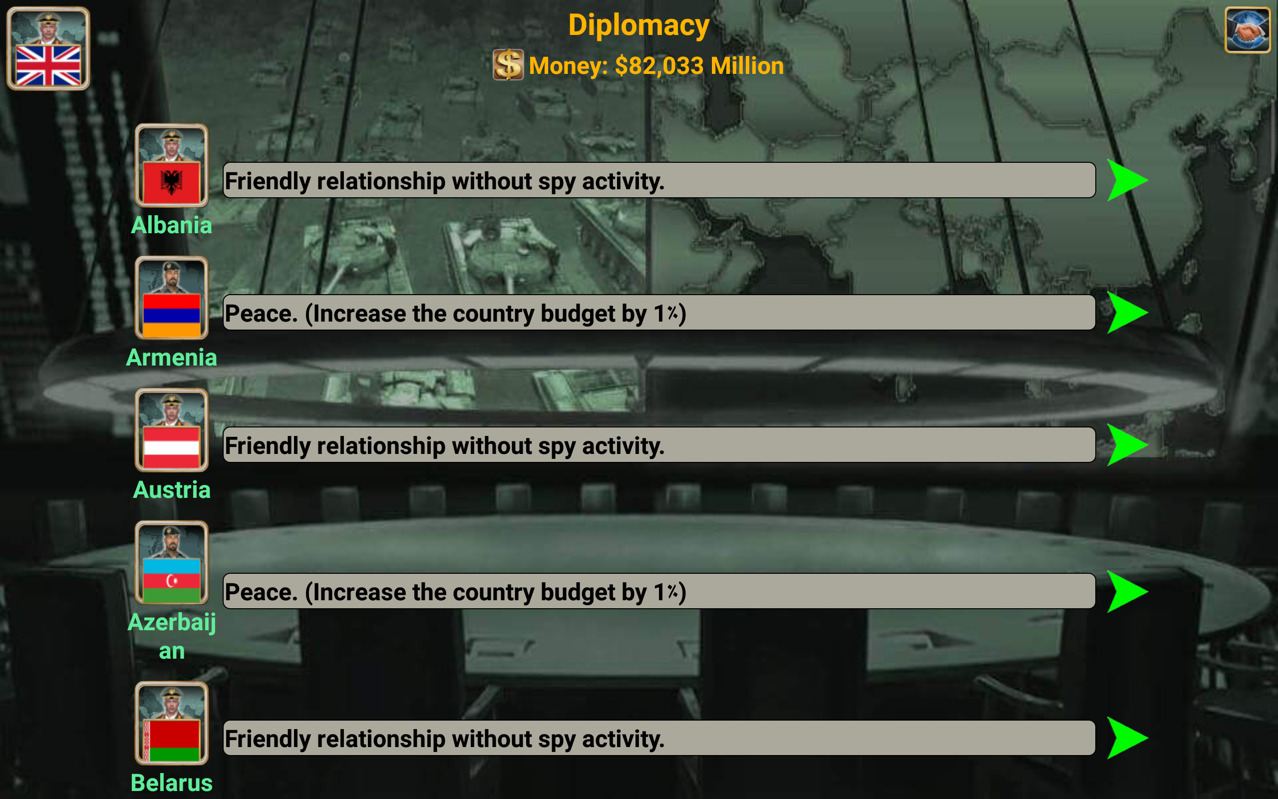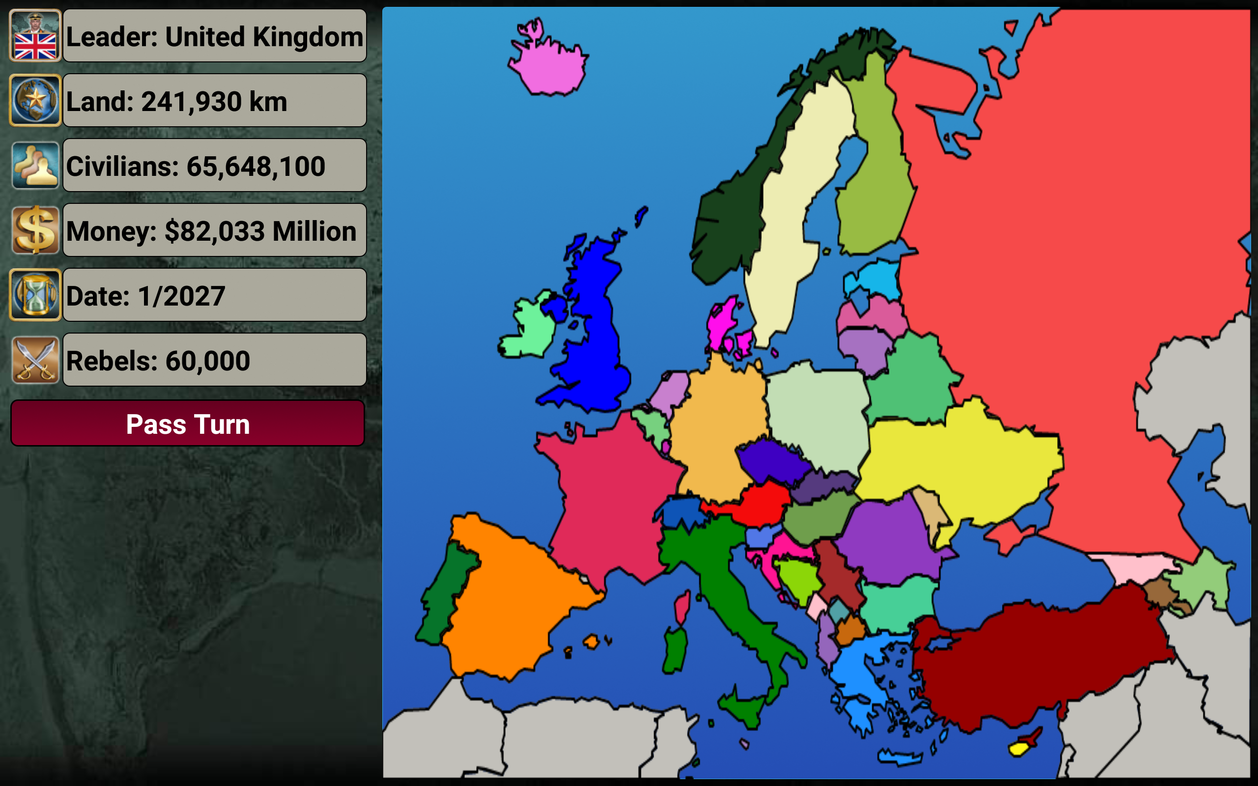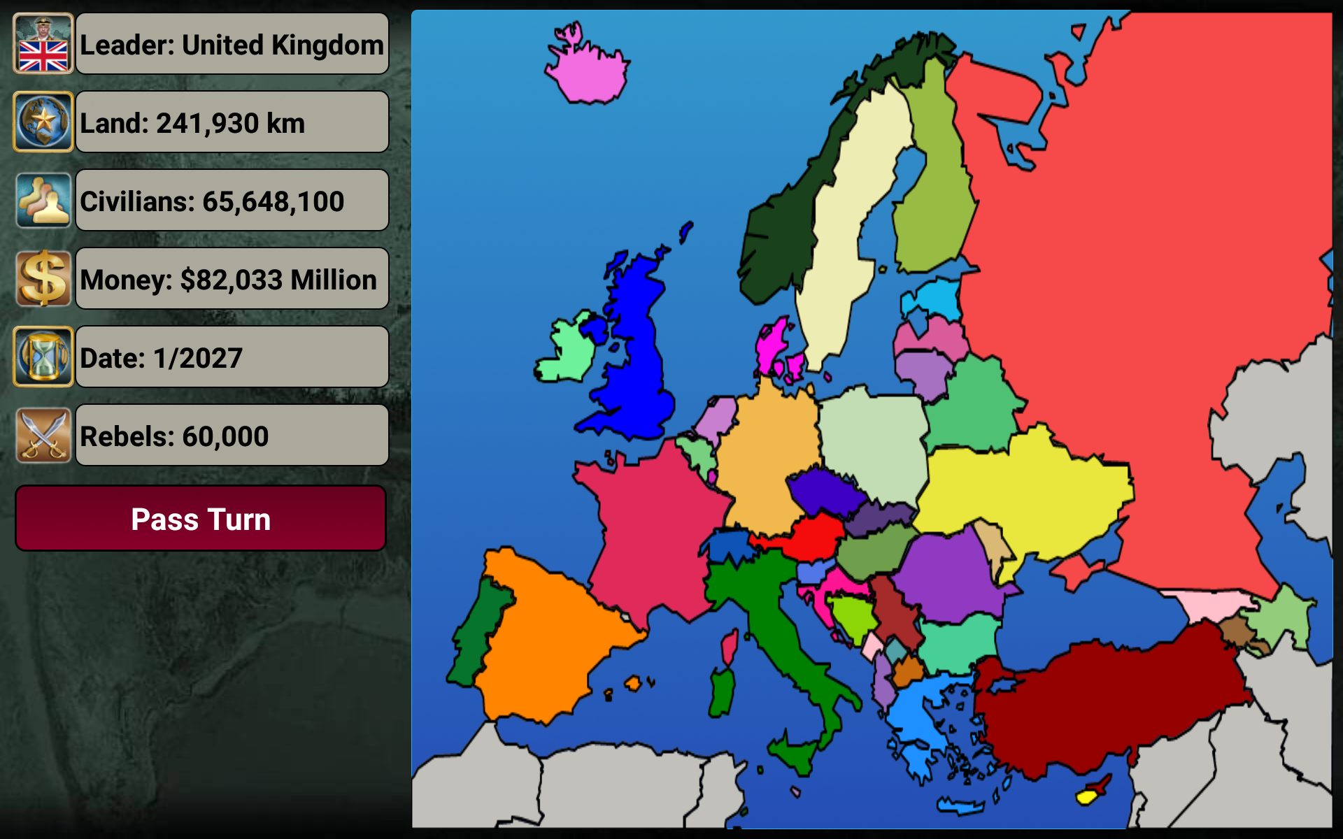 In this game, you choose a country to lead and embark on your strategic journey. Key features include: