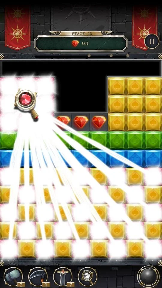 Utilize various tools like hammers, swords, and magic wands to help you clear levels.