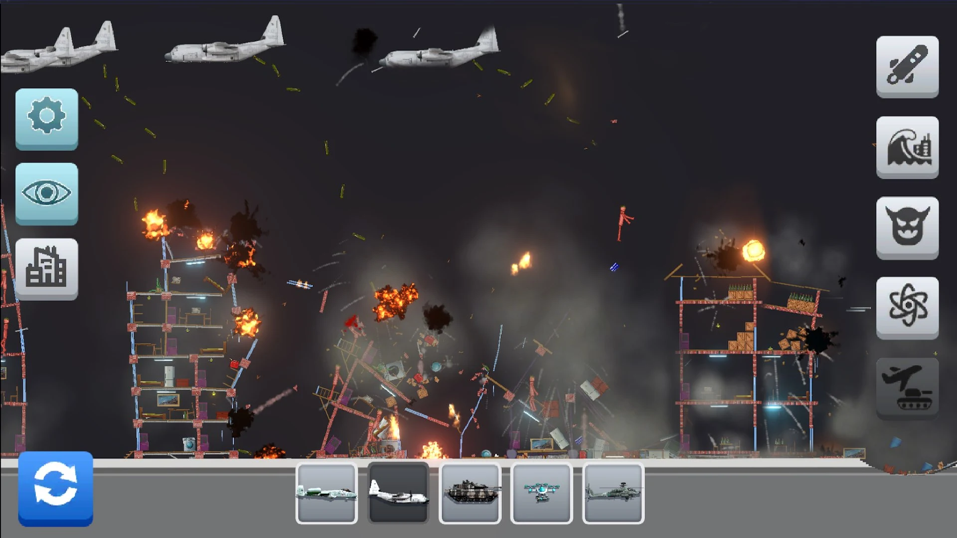 Get creative and design your own scenarios using a diverse selection of tools and weapons. Experiment with unique combinations and develop different strategies to challenge yourself in crafting the ultimate destruction scene.