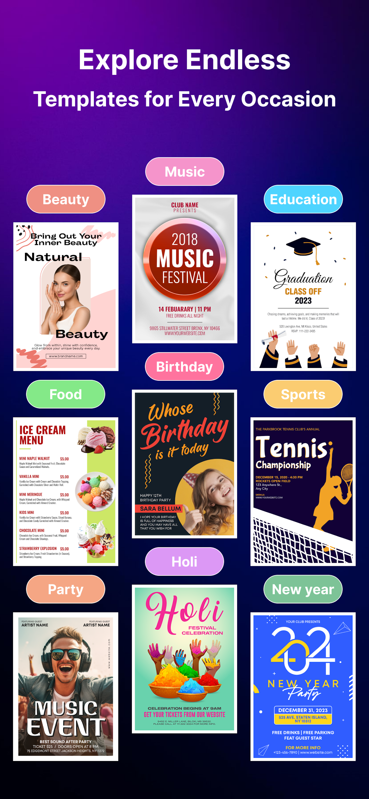 This application caters to a broad spectrum of design activities. Whether you're looking to create promotional materials for an event, eye-catching social media posts, or corporate marketing collateral, Poster Maker & Flyer Maker provides flexible features that meet diverse design needs.