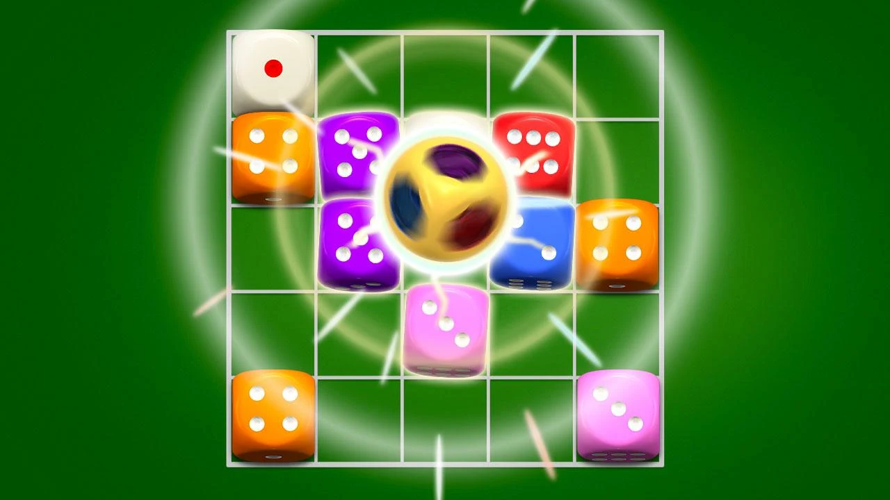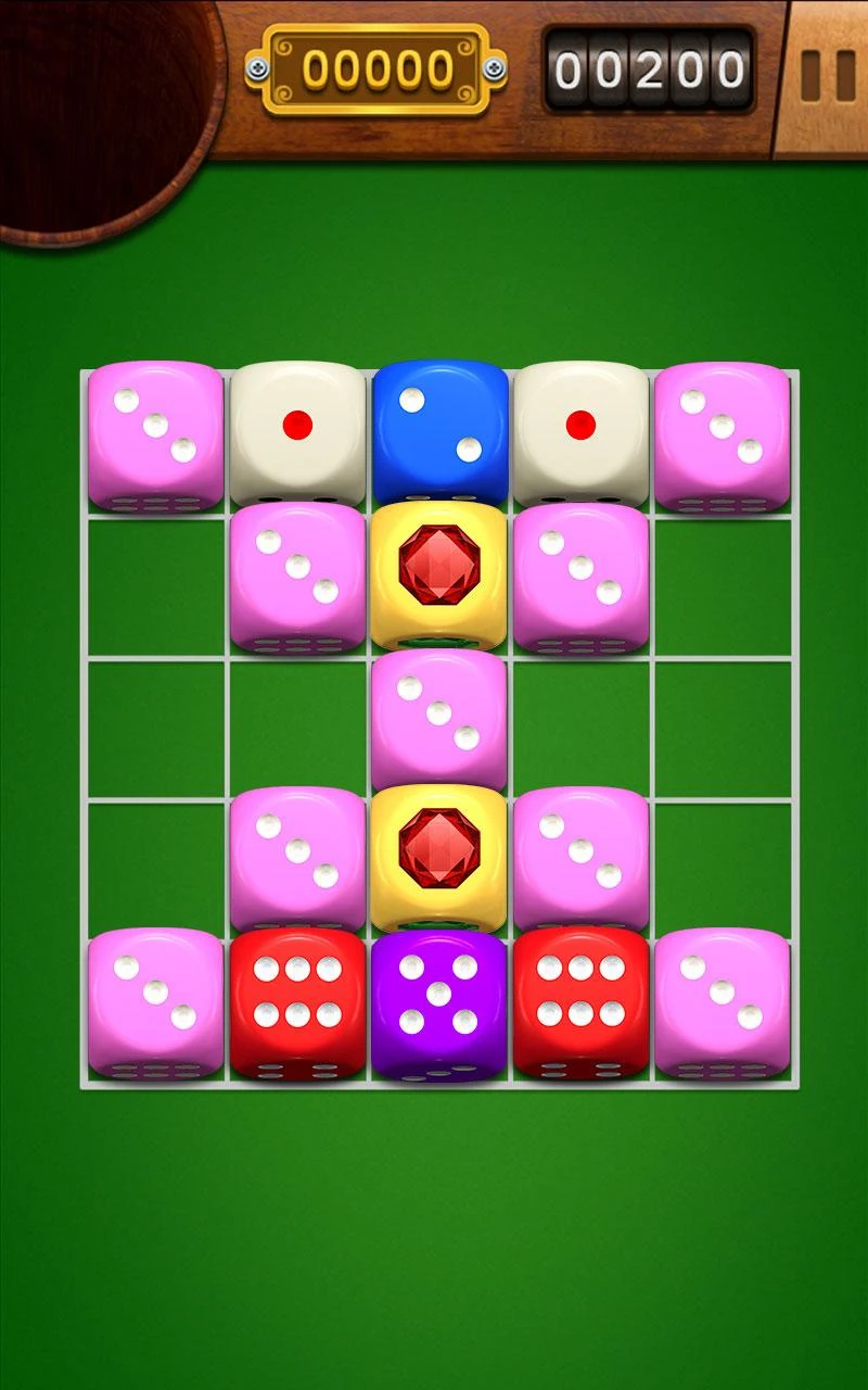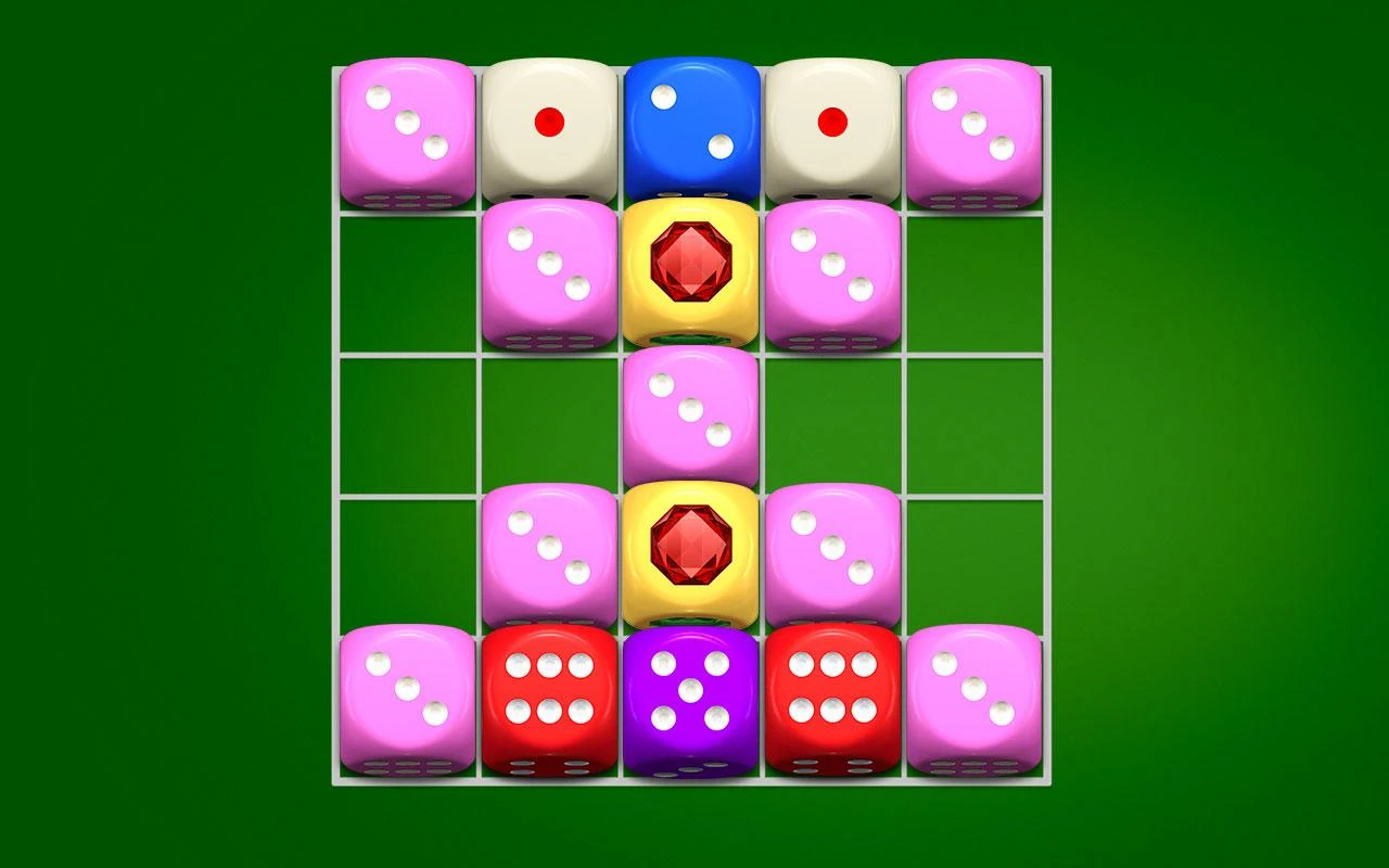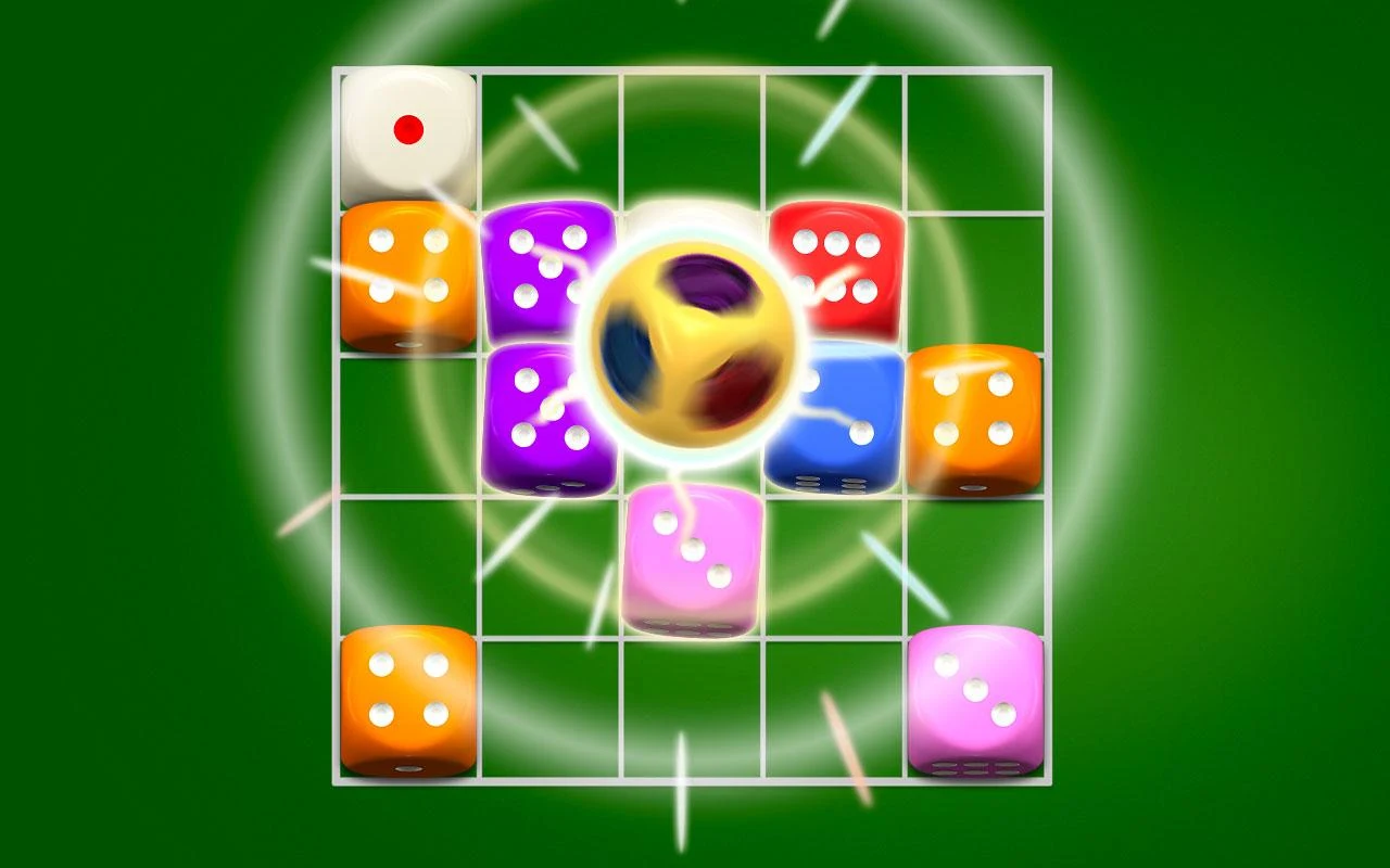 Merge three 6-dot dice to form a jewel cube, which can crush nearby dice within a 3x3 area.