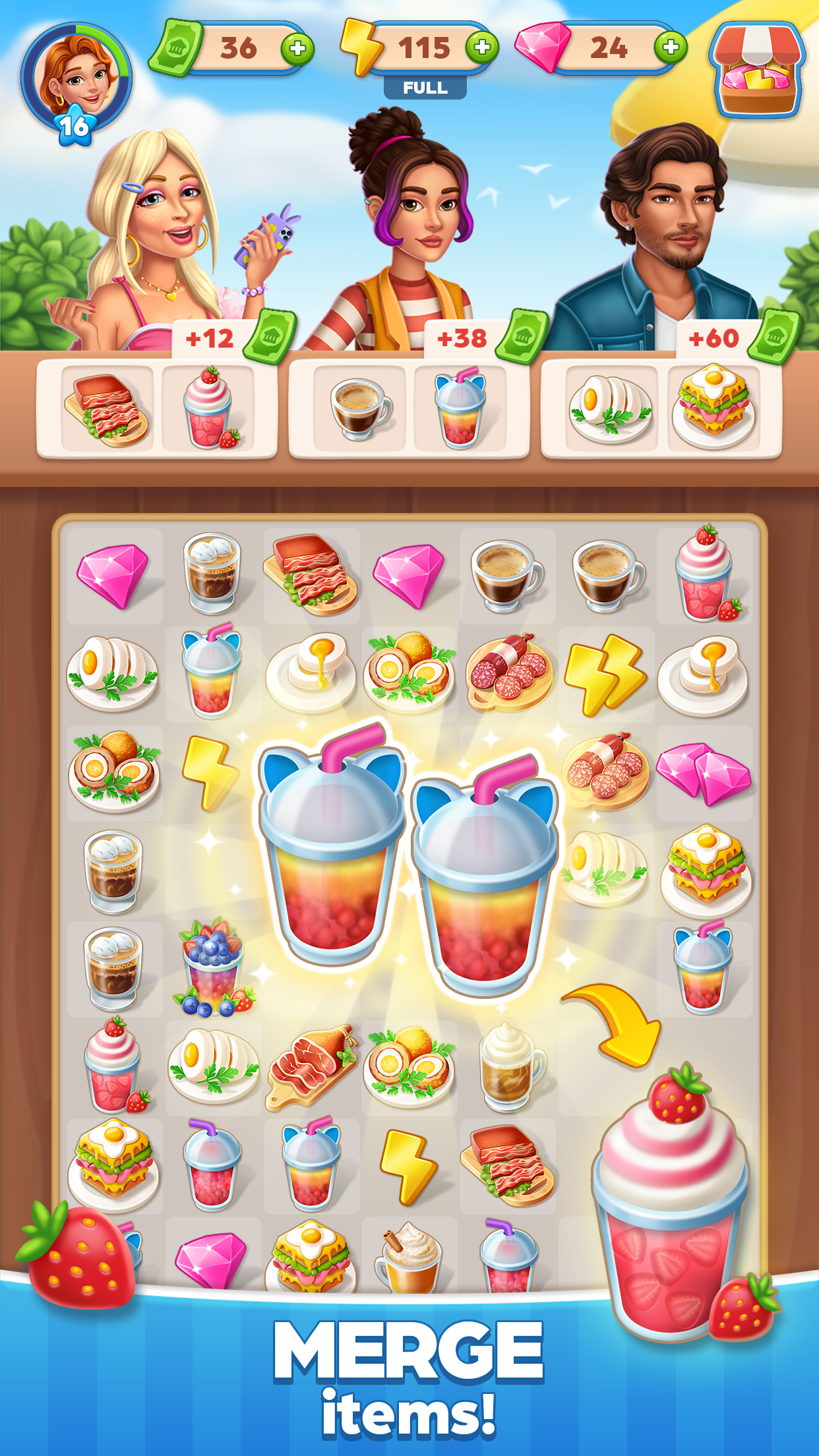 In *Journey Home: Merge and Story*, drag and combine similar everyday items to upgrade them into powerful new tools for your adventures. Match luscious meals on the board to create delectable recipes, satisfying hungry customers and completing tasks. Unlock new categories, from delightful pastries and coffees to imaginative design objects, ensuring a relaxing gaming experience. Merging is simple to learn yet challenging to master!