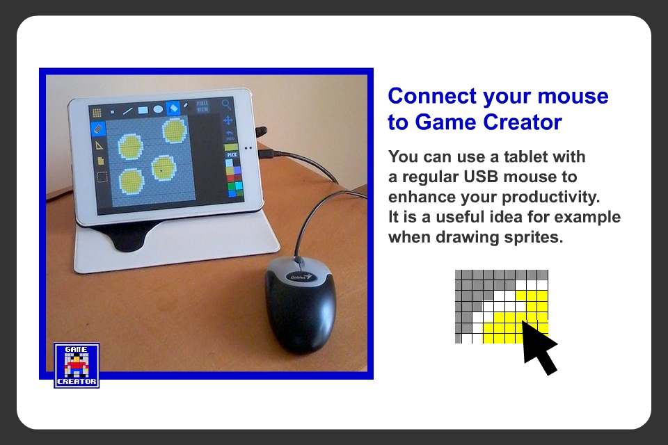 With Game Creator, you can design your own games on an Android tablet or phone. It works intuitively right out of the box, with no need for additional plugins or software.