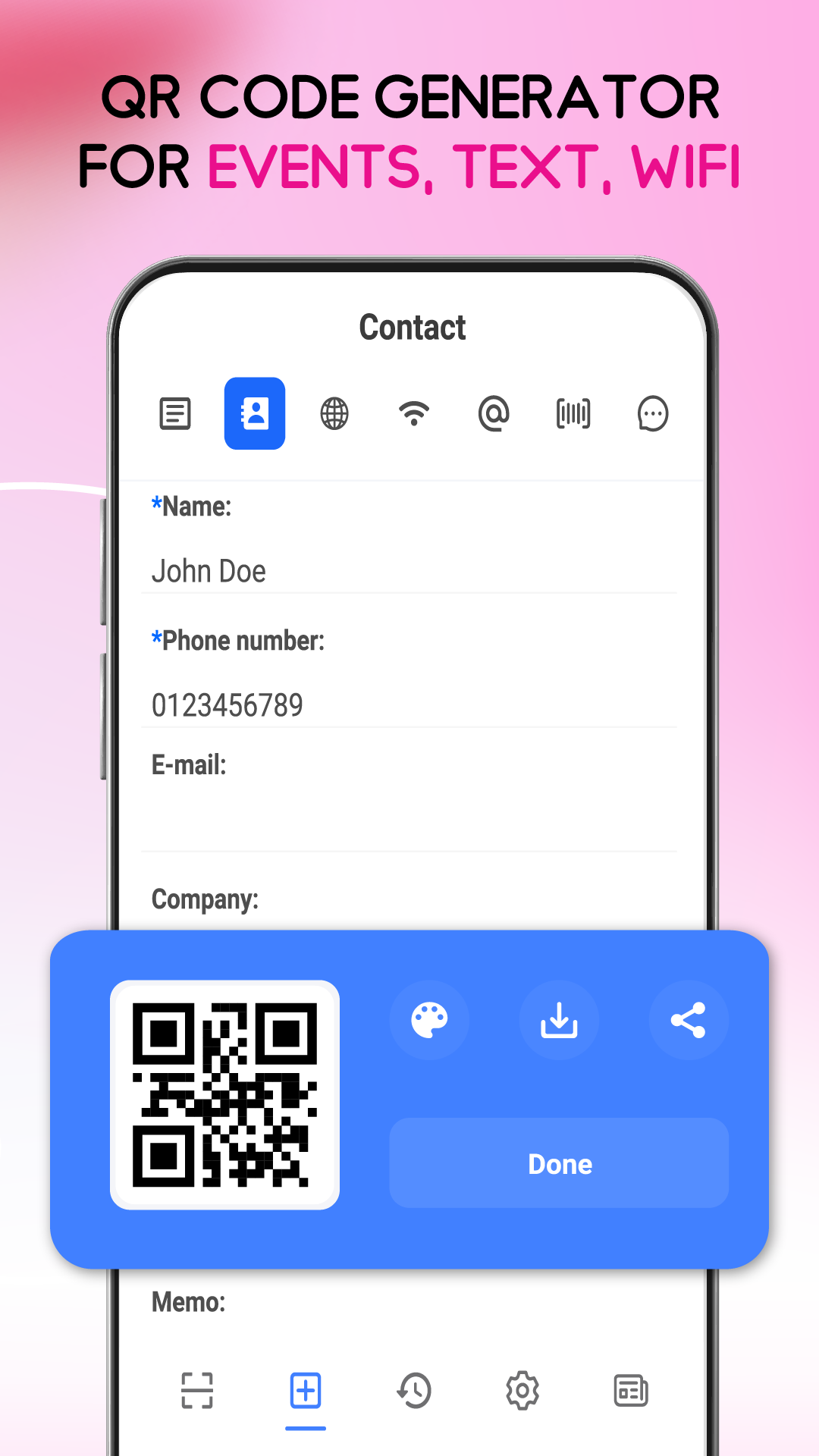 Personalize your QR code with your info or company logo, increasing engagement and scans.