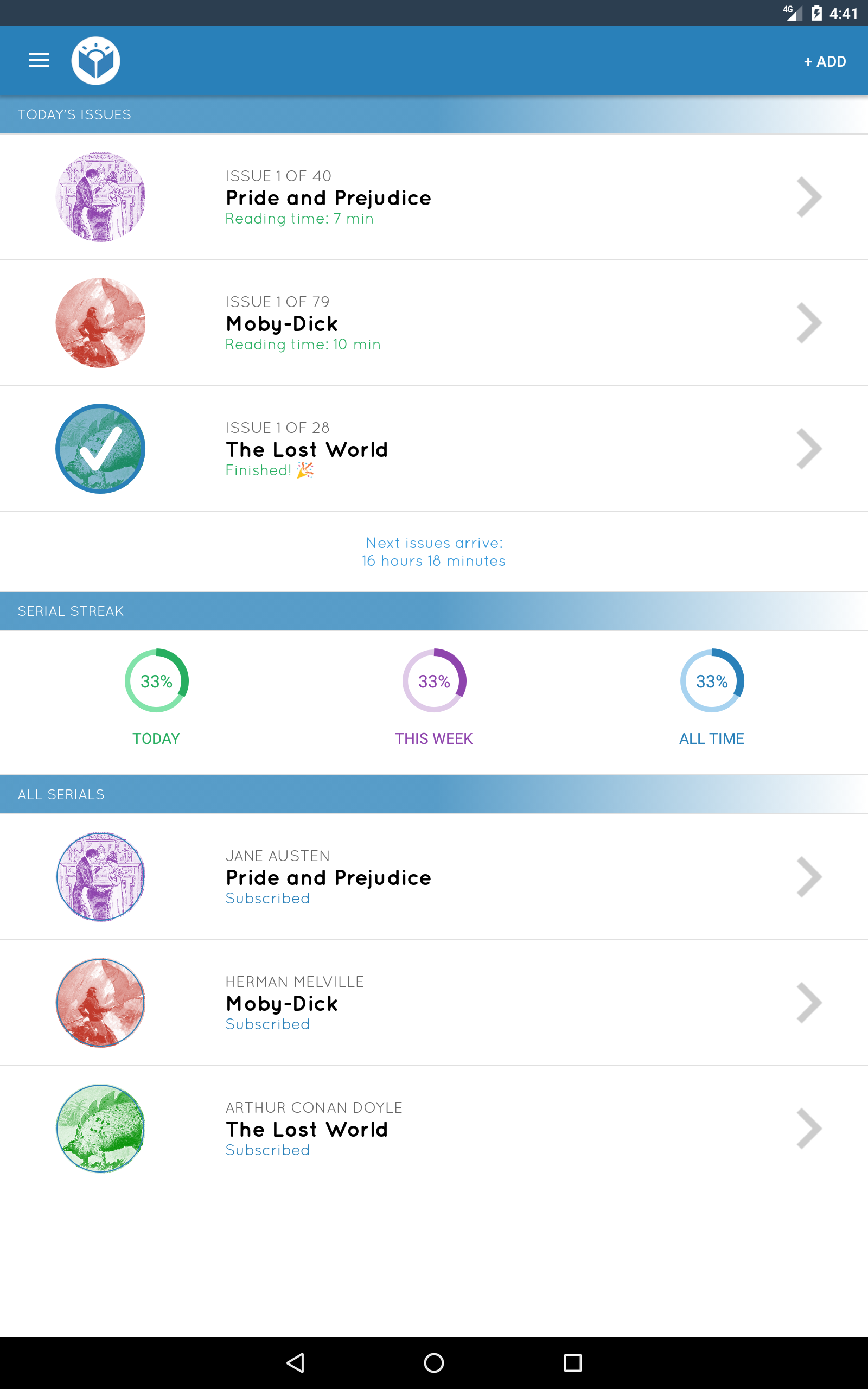 "Serial Reader’s subscription format makes it a little bit more fun to crank through the classics." – *Lifehacker*