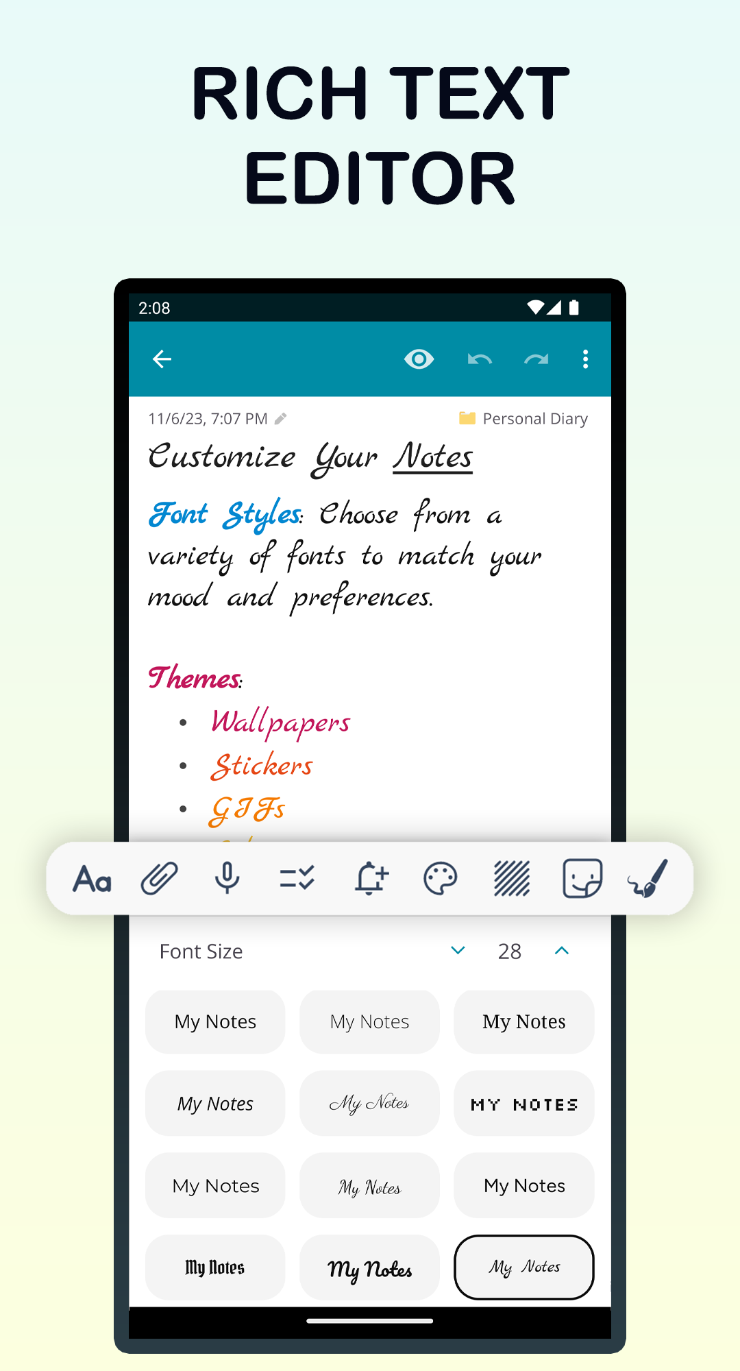 The app offers a variety of font styles and sizes, allowing you to tailor the appearance of your text. Whether you prefer a professional look or something more casual, you can make your notes clearer and more user-friendly in any situation.