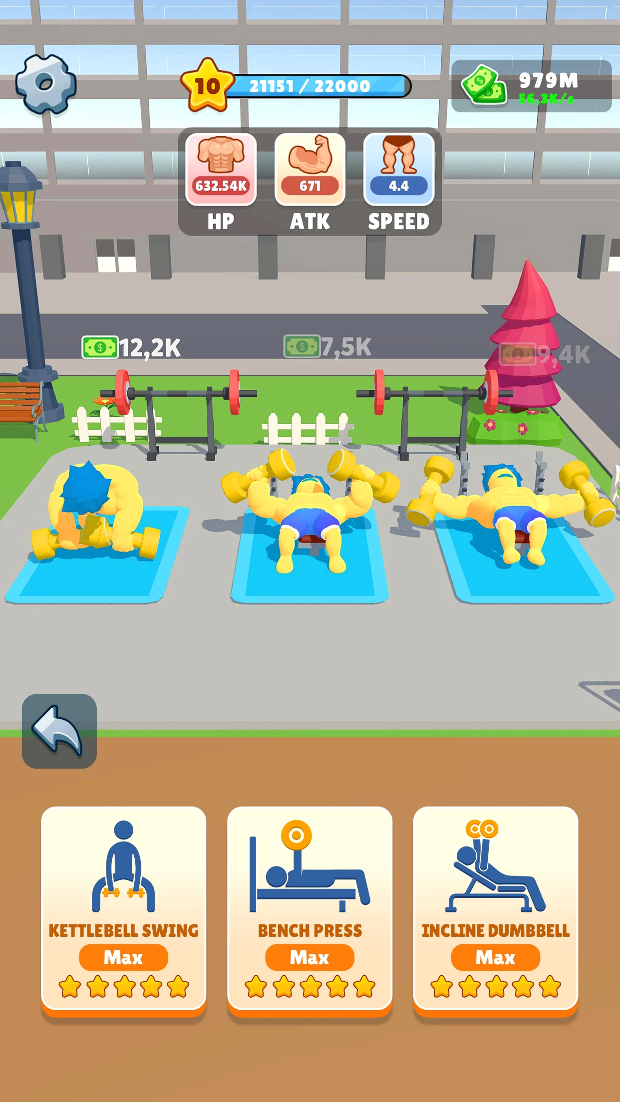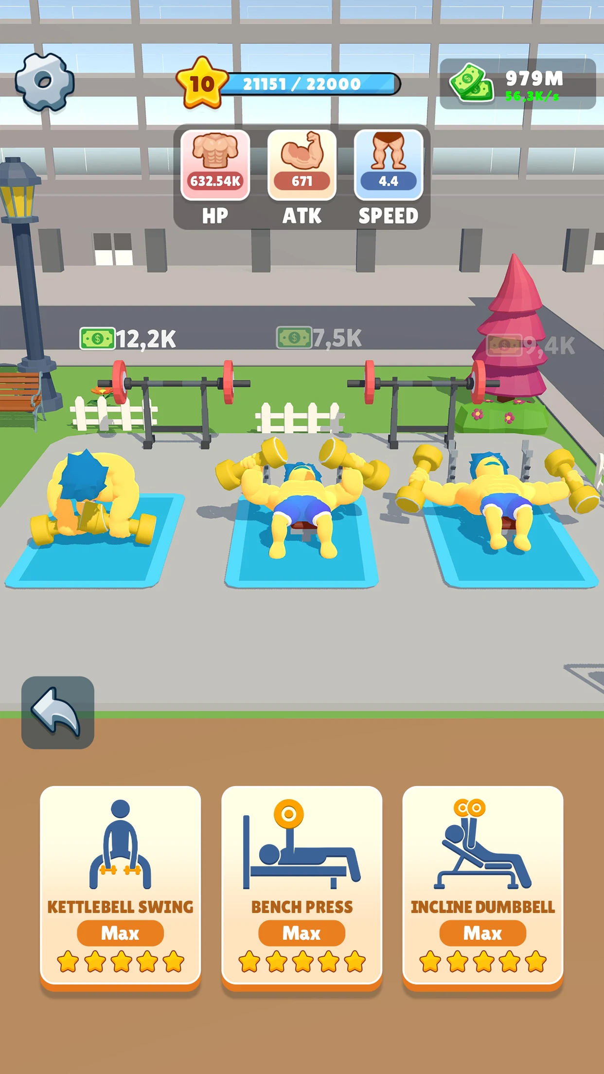 Improve your stats by unlocking new exercises and equipment.