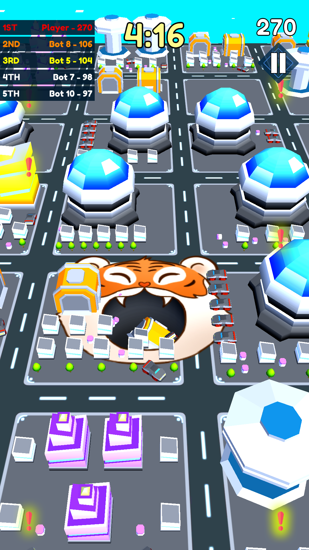 Explore maps brimming with towering structures, devouring every object that crosses your path. As you expand in size and gravitational power, unleash chaos and leave a trail of destruction behind you!