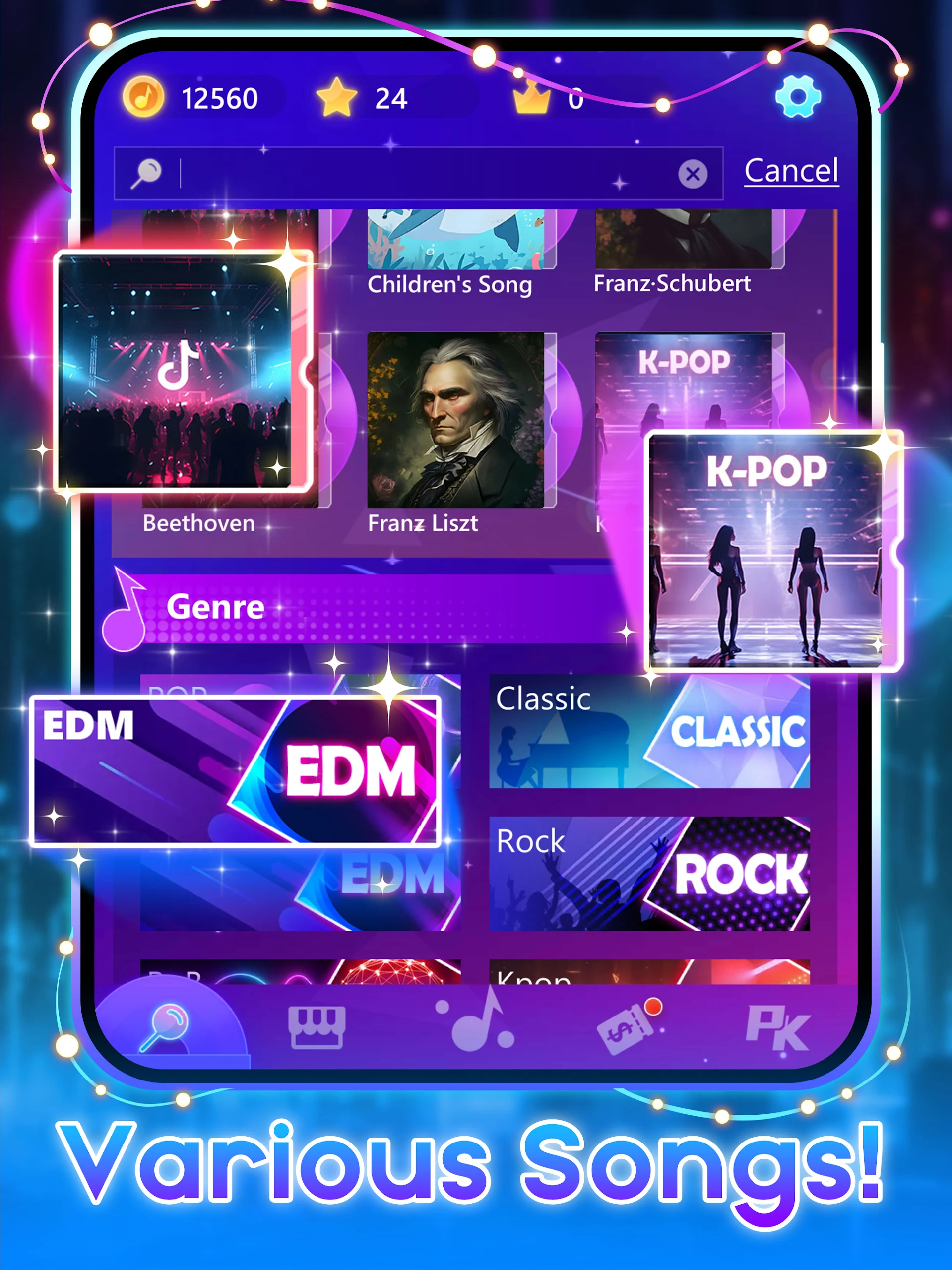 Piano Star: Tap Music Tiles is a mesmerizing music game that immerses you in a world filled with enchanting melodies and notes. Combining popular pop songs with classical piano tracks, players embark on a charming musical adventure.