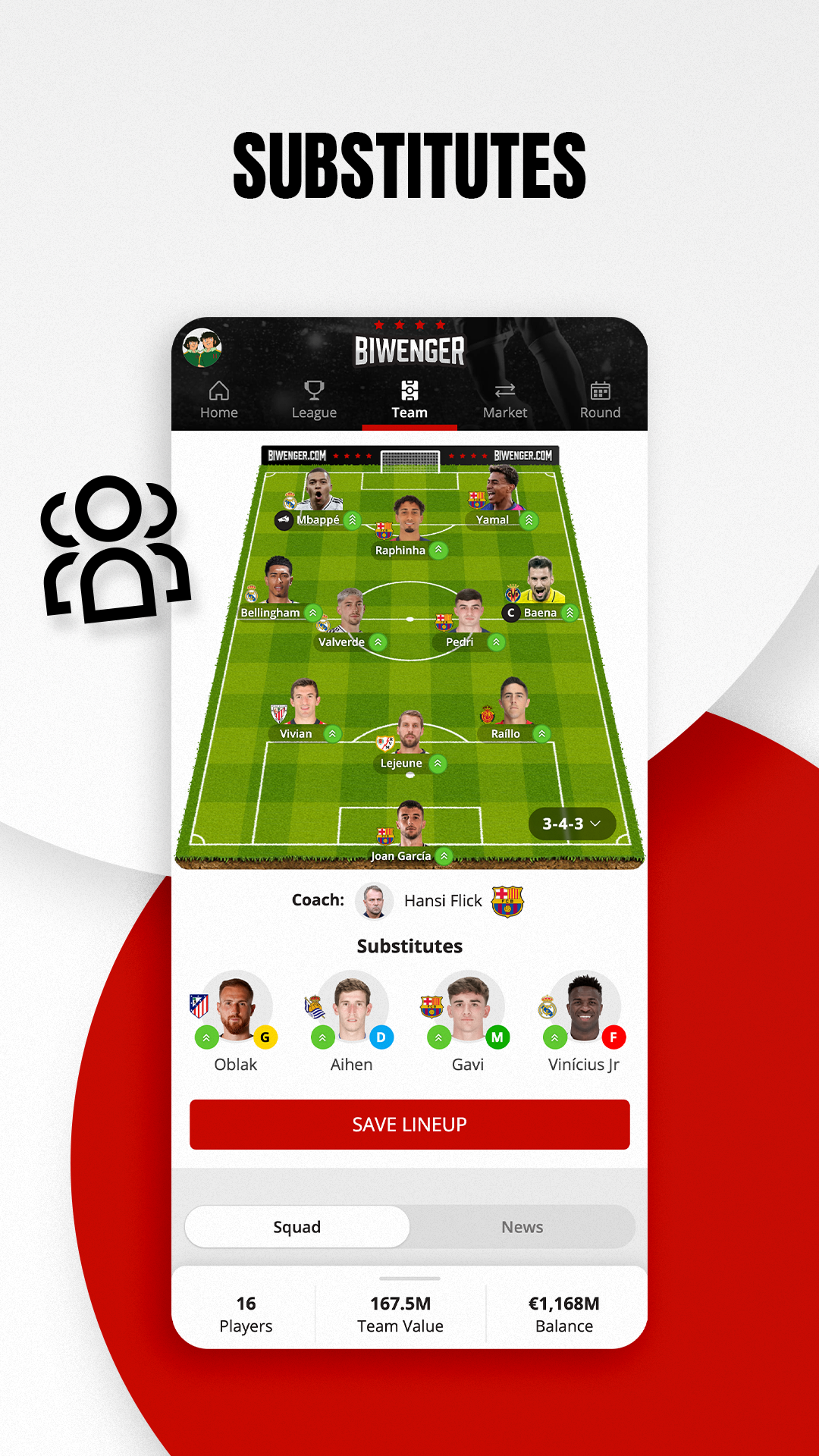 Biwenger is an immersive football simulation game that allows you to manage a team made up of real players in a virtual league. Compete with your friends to build the best team and aim for victory!