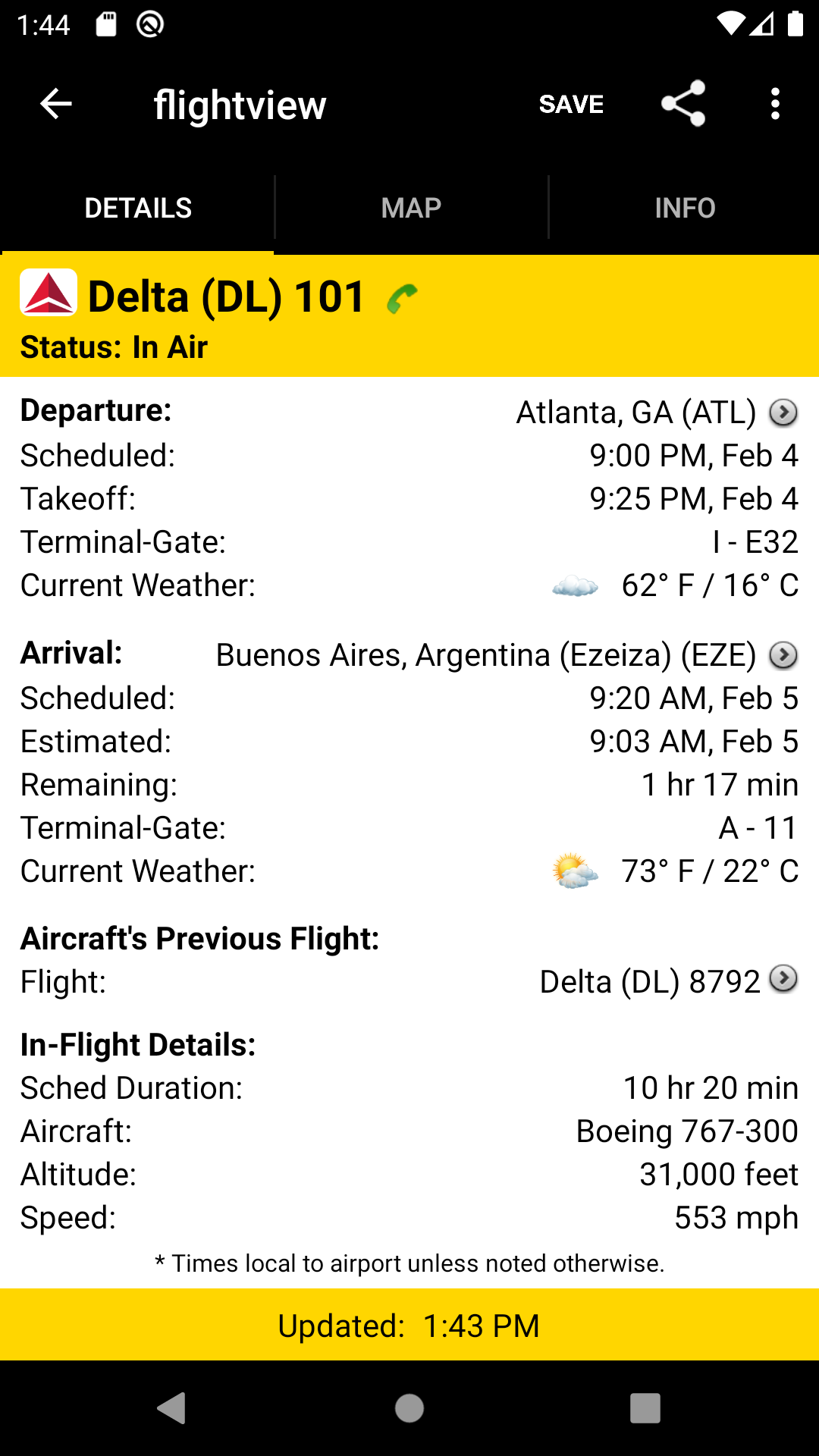 As a premier flight tracking app, FlightView provides access to a wealth of real-time flight information. With the ability to monitor both upcoming and in-flight flights worldwide, you'll receive up-to-the-minute status alerts through push notifications. Key features include: