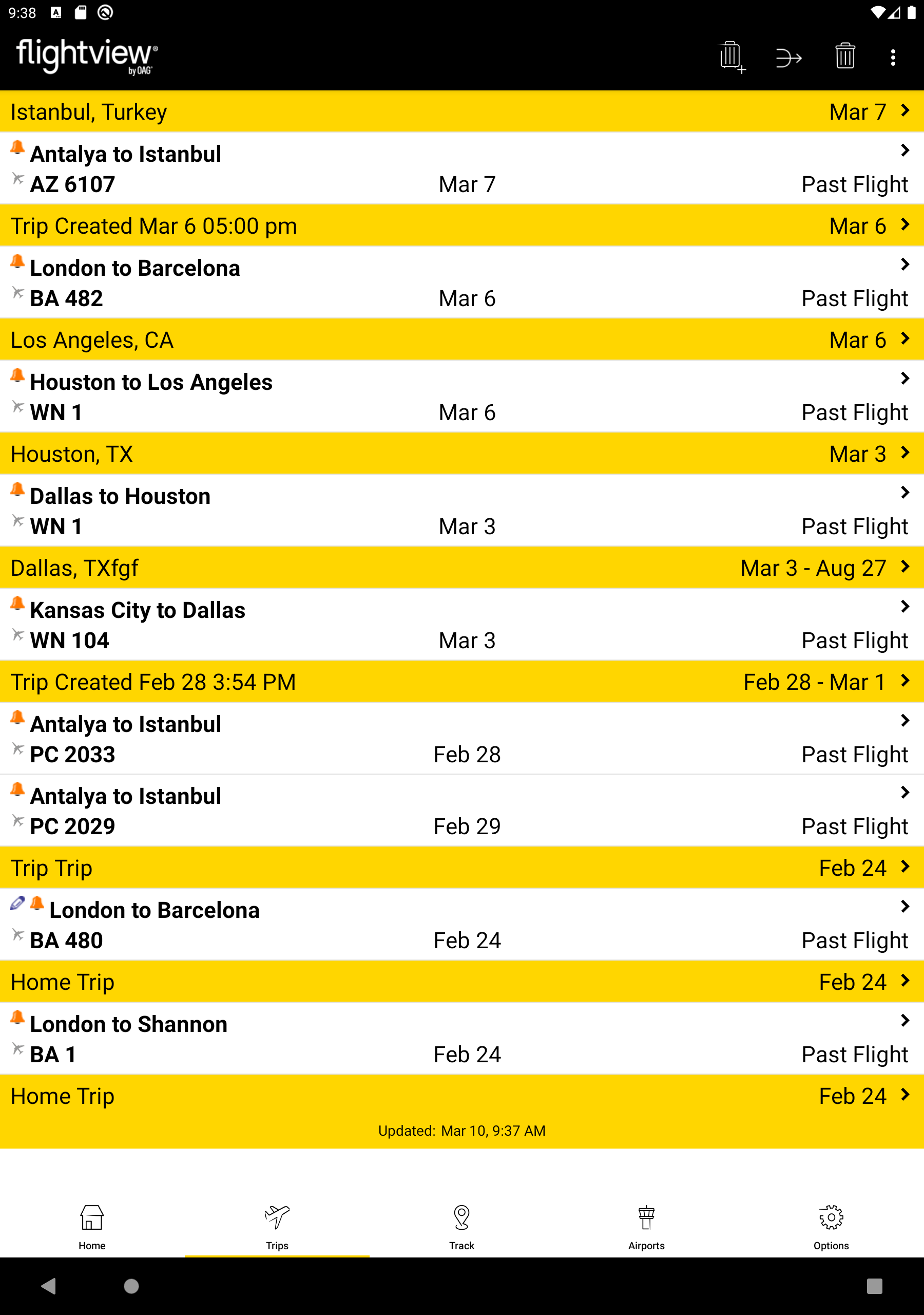 Simply forward your itinerary confirmation emails to Trips@FlightView.com, and they'll automatically appear in My Trips on your device.