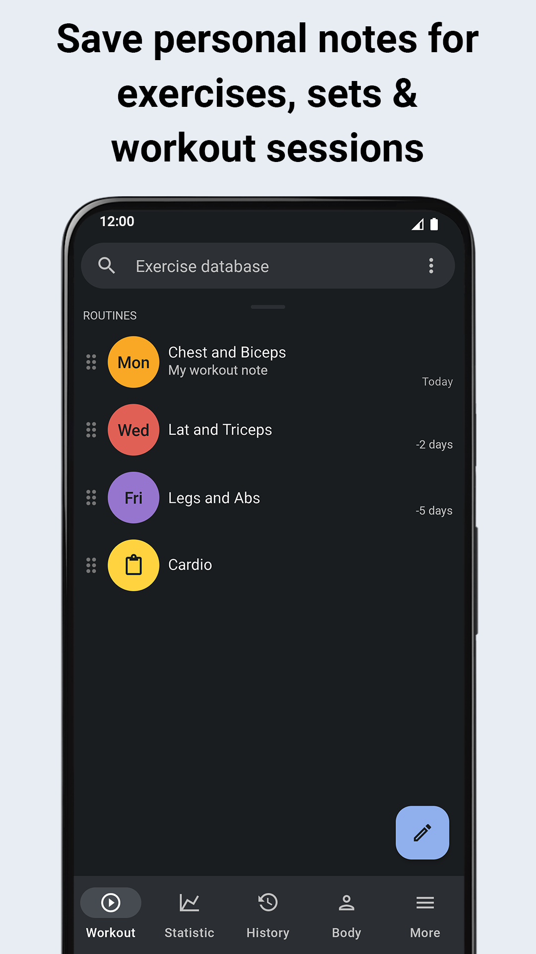 With the GymRun Workout Log app, you have the flexibility to create personalized workout routines tailored to your preferences. Instead of adhering to a single exercise regimen, you can modify your plans however you like. The app offers an extensive library of hundreds of exercises, making it easy to design workouts that suit your individual fitness goals. Designed specifically for Android users, GymRun provides a sophisticated interface for logging every aspect of your gym journey. Utilize its comprehensive notes function to delve deeper into your mobile workout diary and streamline your favorite exercise lists for effortless future modifications.