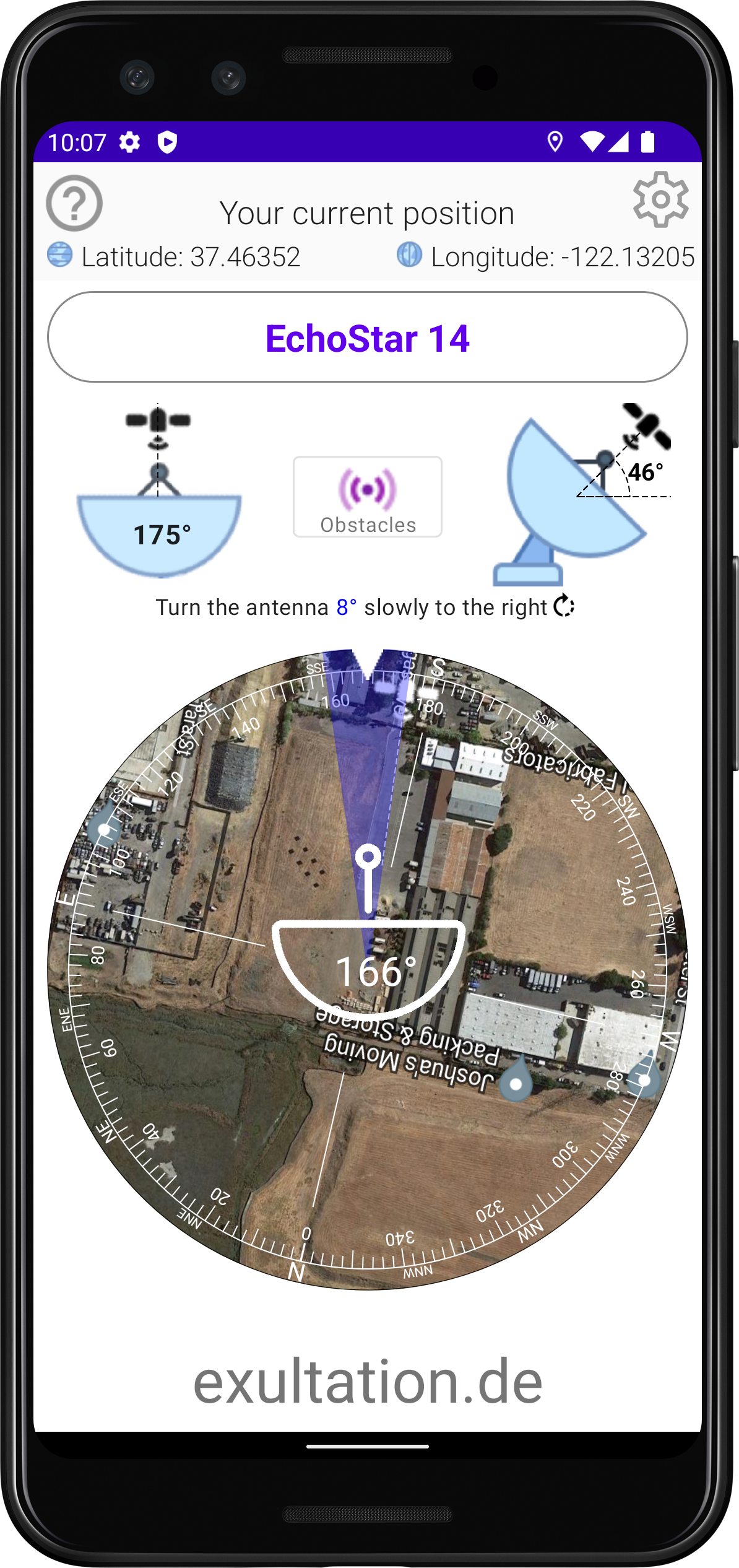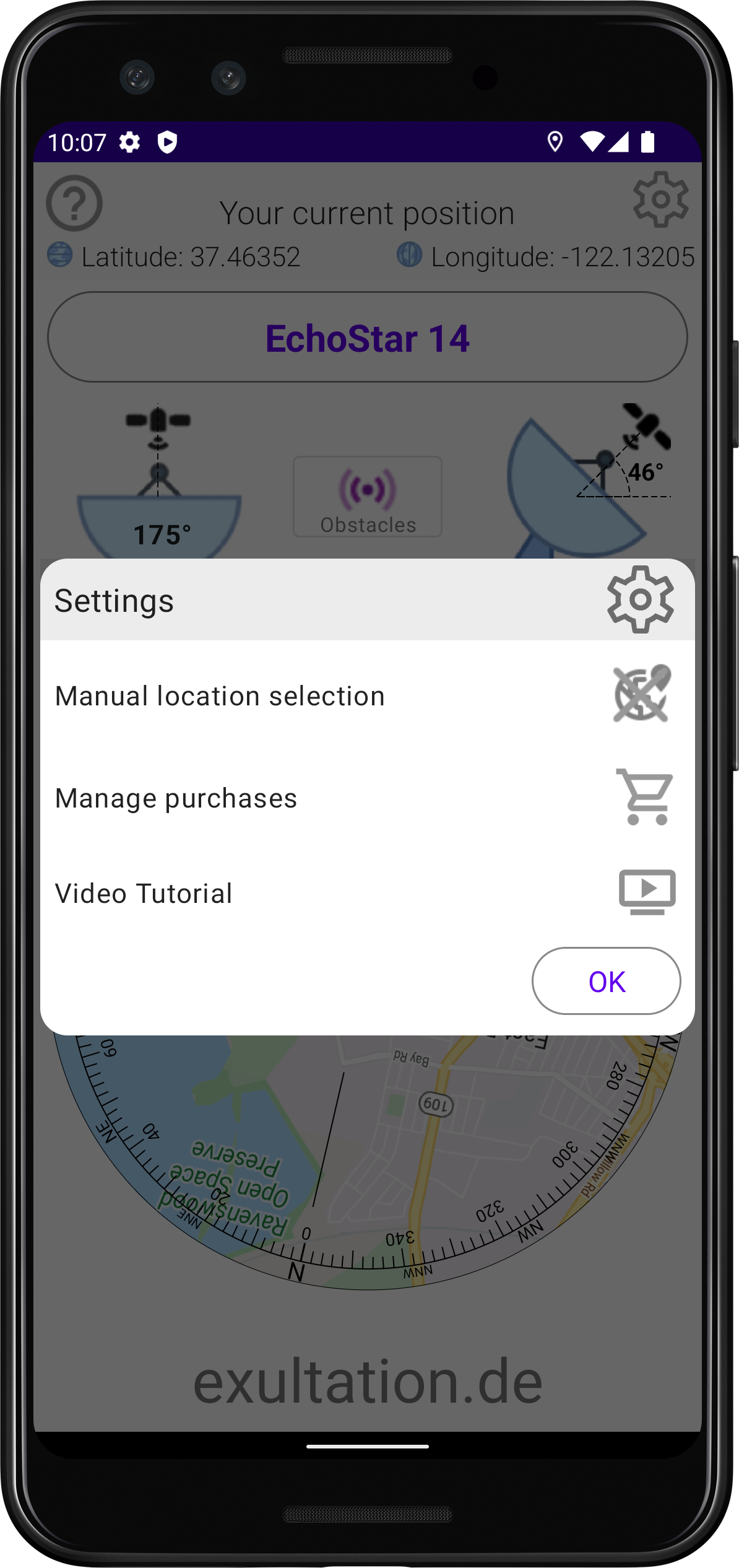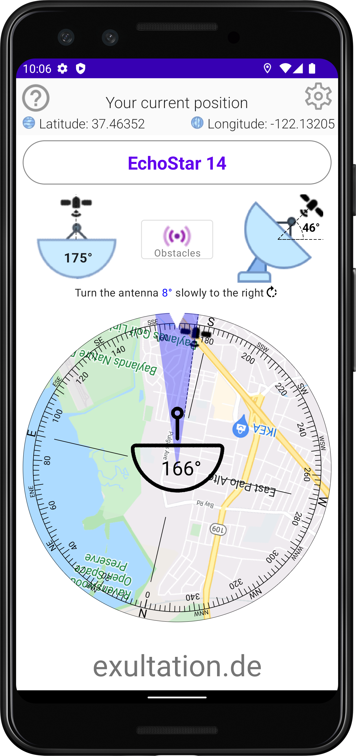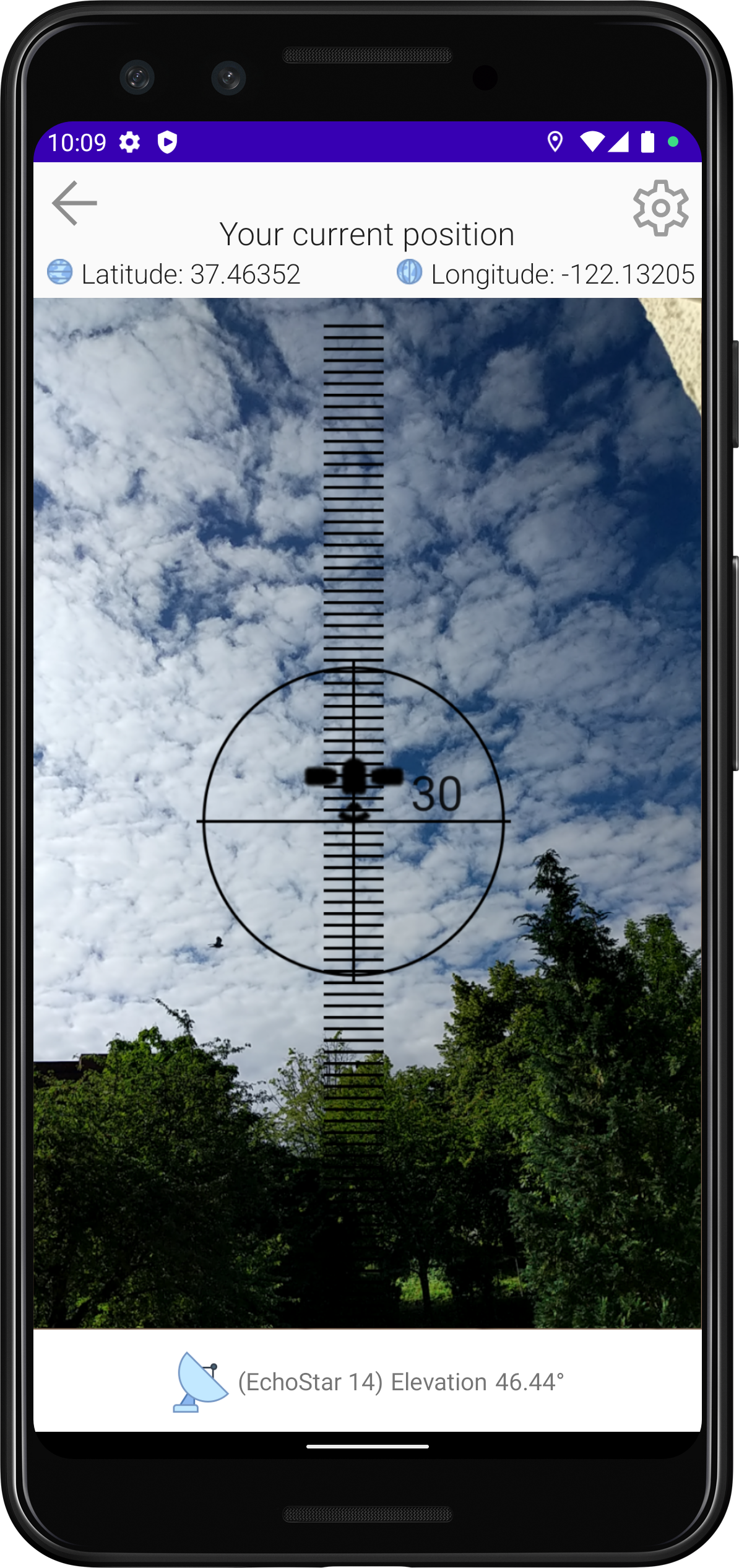 To calibrate the app, simply touch the center of the map.
