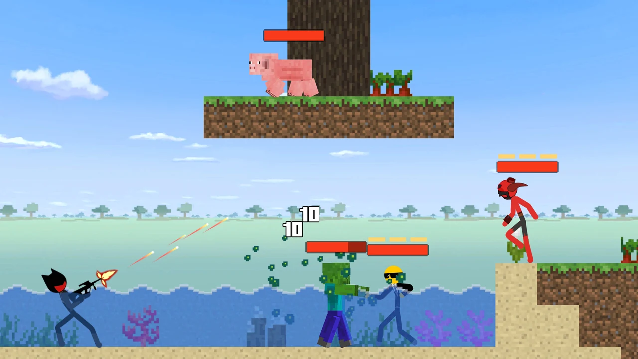 Stickman Combat: Craft War offers a rich landscape of stickman games, delivering fresh emotions and distinctive qualities in every context. If you’re in search of a thrilling stickman survival arena, you’ve found it! Enter eye-catching blocks and engage with various opponents in dynamic combat. The robust battles featuring fierce weapons await your exploration as you strive to save this square world.