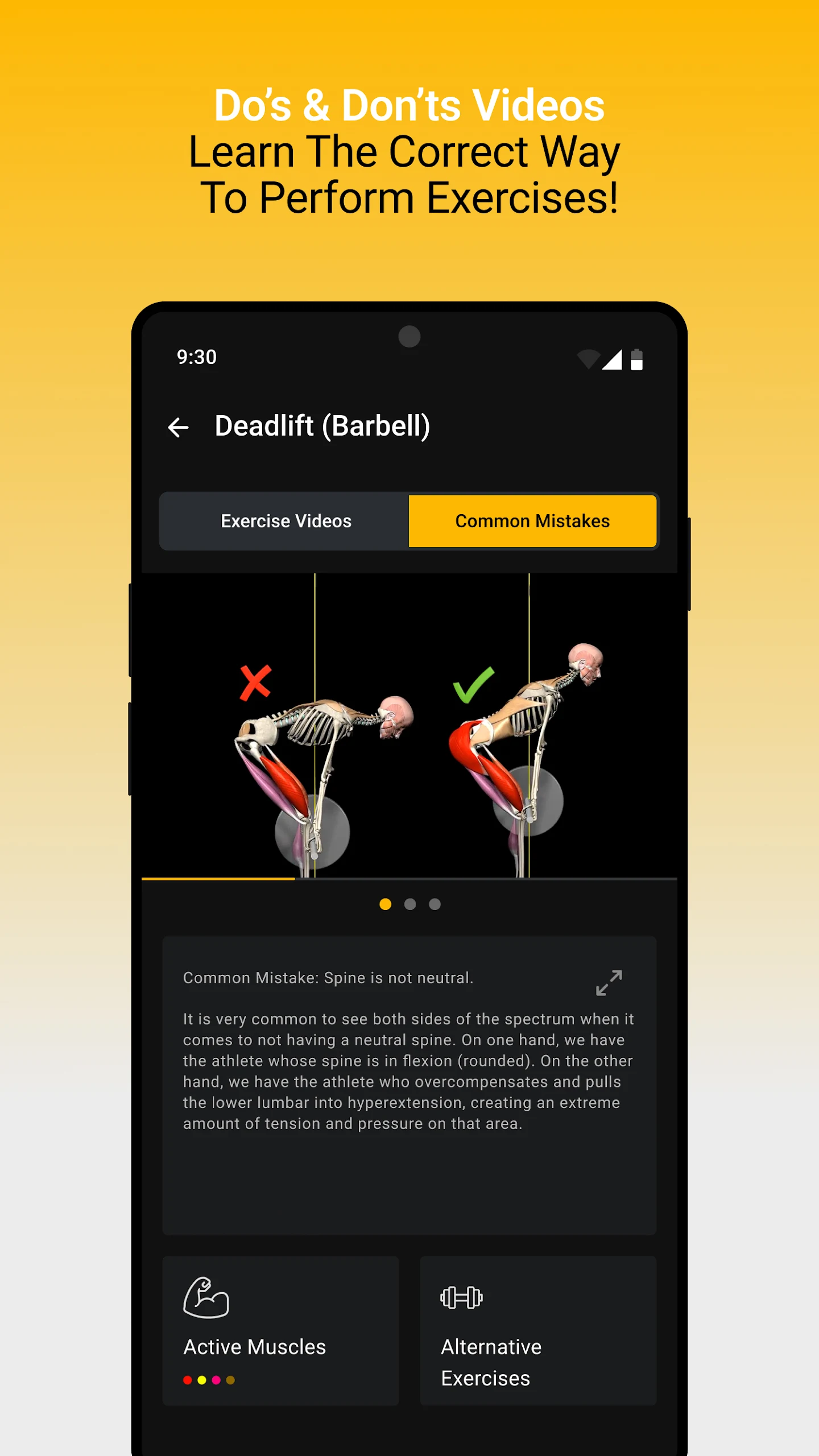 Visual demonstrations of which muscles are activated during various exercises along with optimal form and technique.