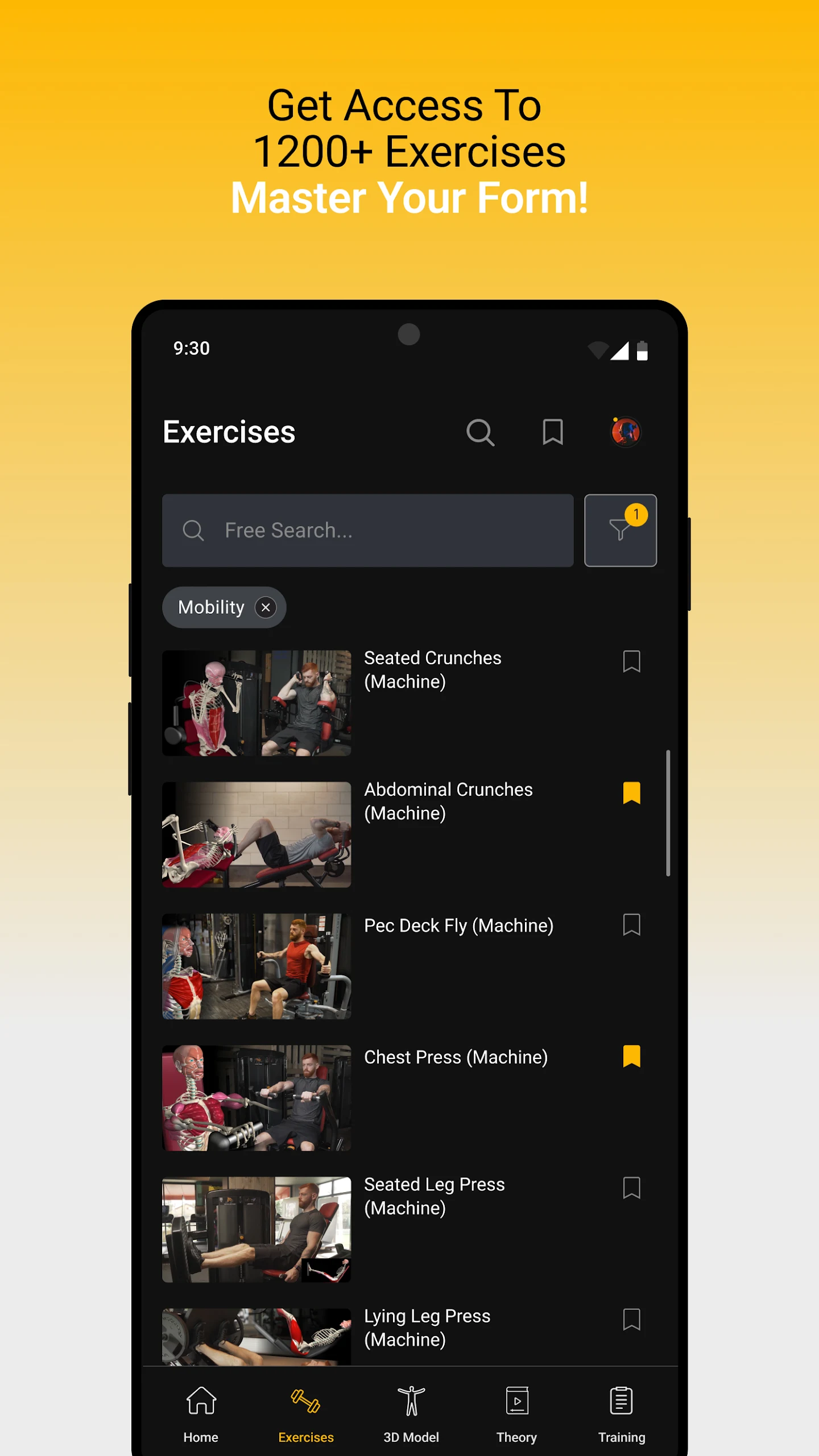 Over 800 analyzed muscle training exercises, including: